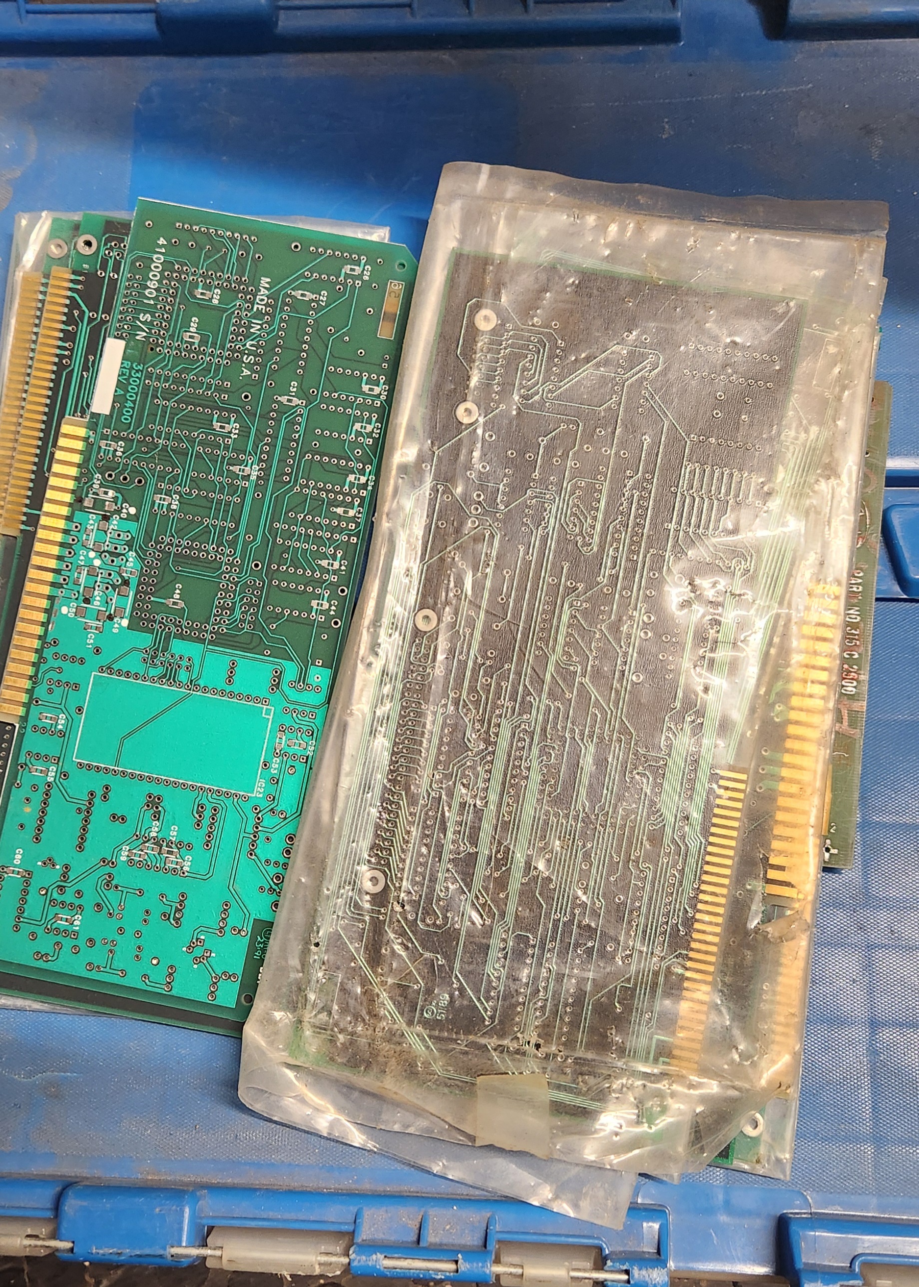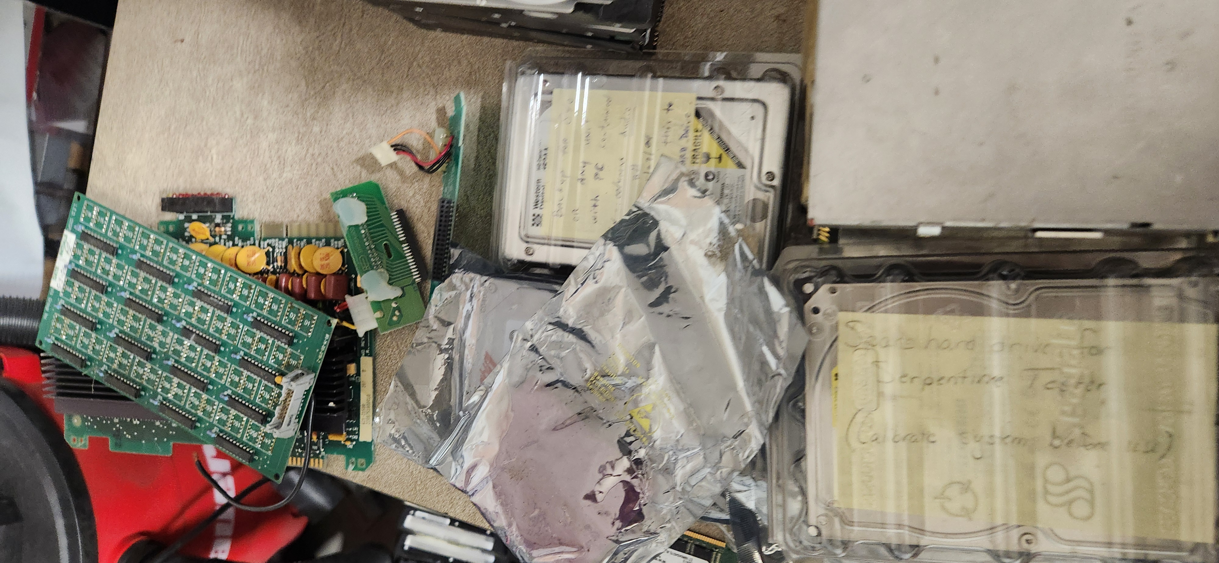 File comment: Some random boards he threw in along with a picture of some of the HDDs still in protective plastic cases. Will try to resell some of these if they work