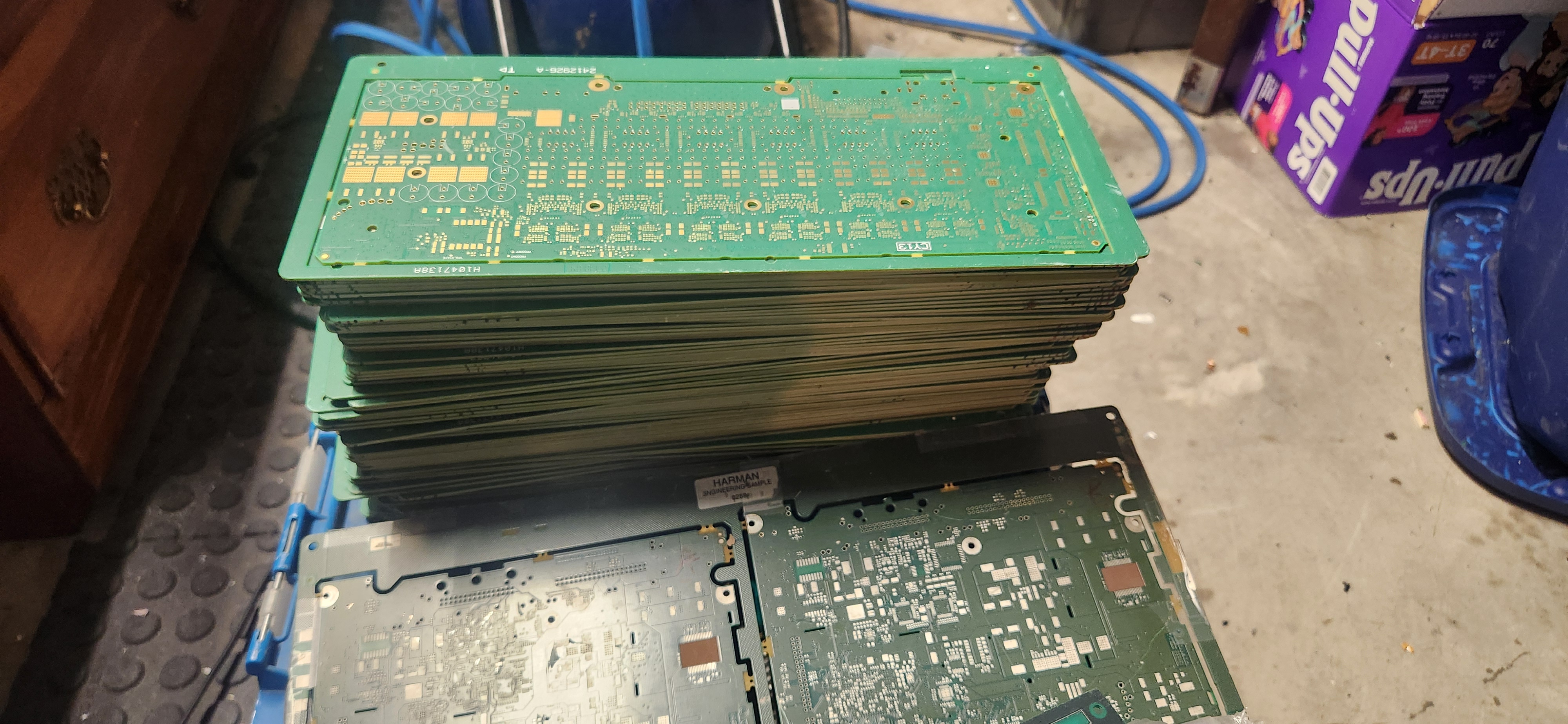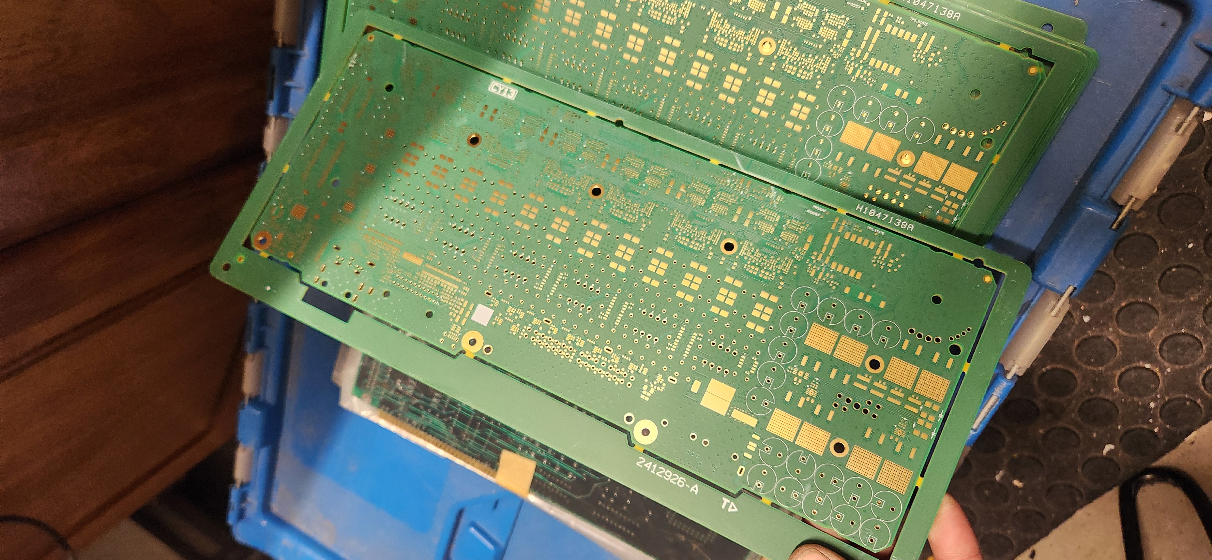-he threw in a bunch of interesting unpopulated boards with gold flashing and gold fingers. These boards are heavy, they feel ceramic and they are brand new. He said they are so heavy because they are made with more copper, like x3 the normal amount(I'm sure one of you guys will be able to tell me what this means)