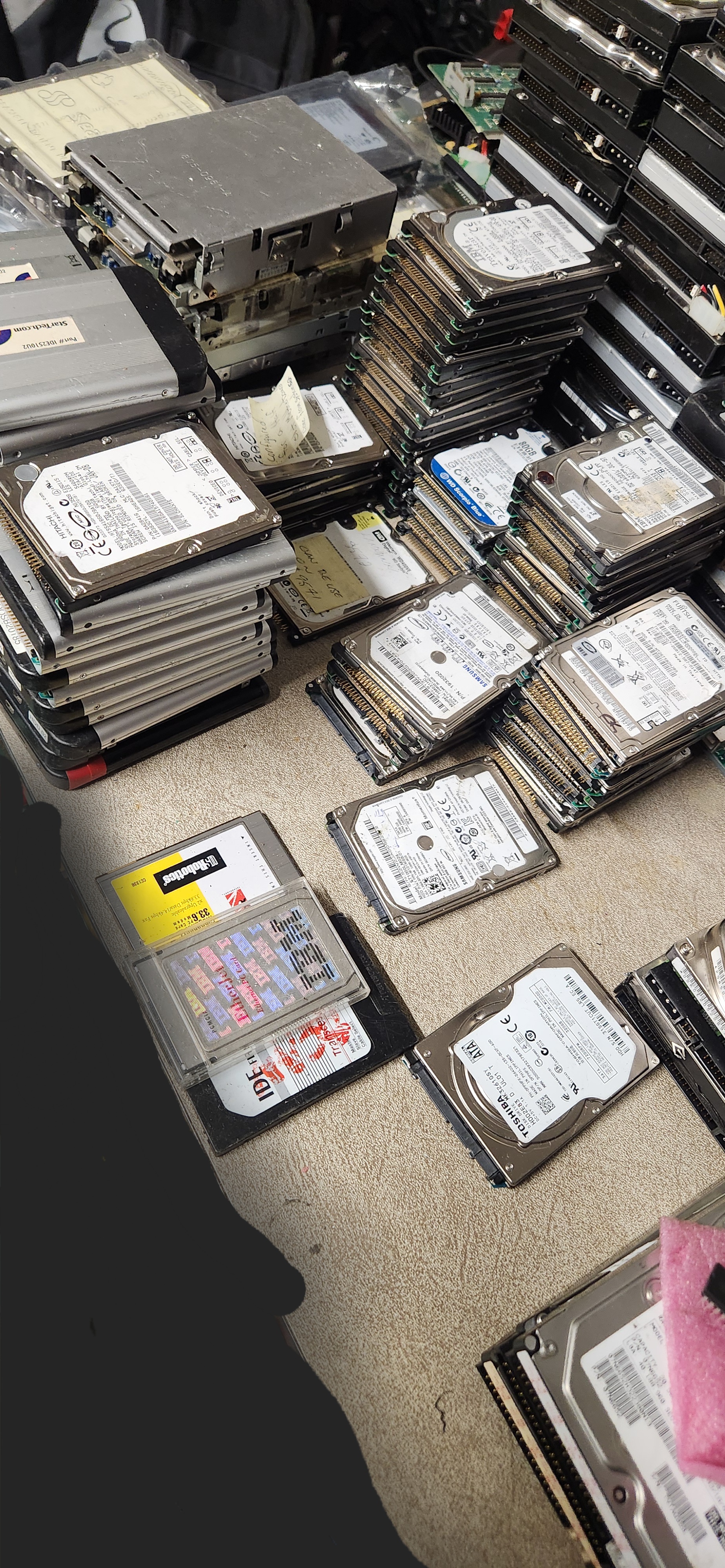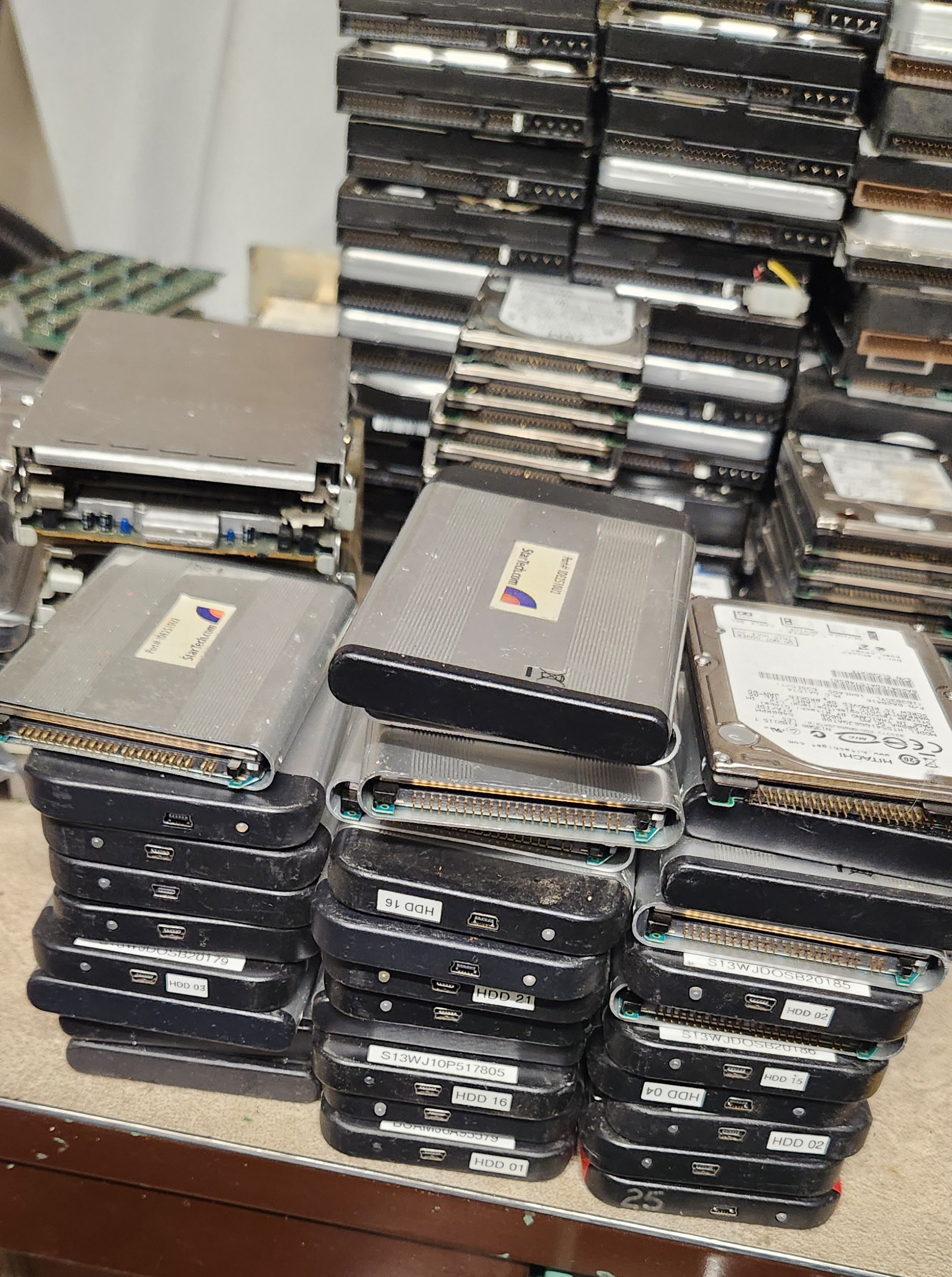 File comment: HDDs on table