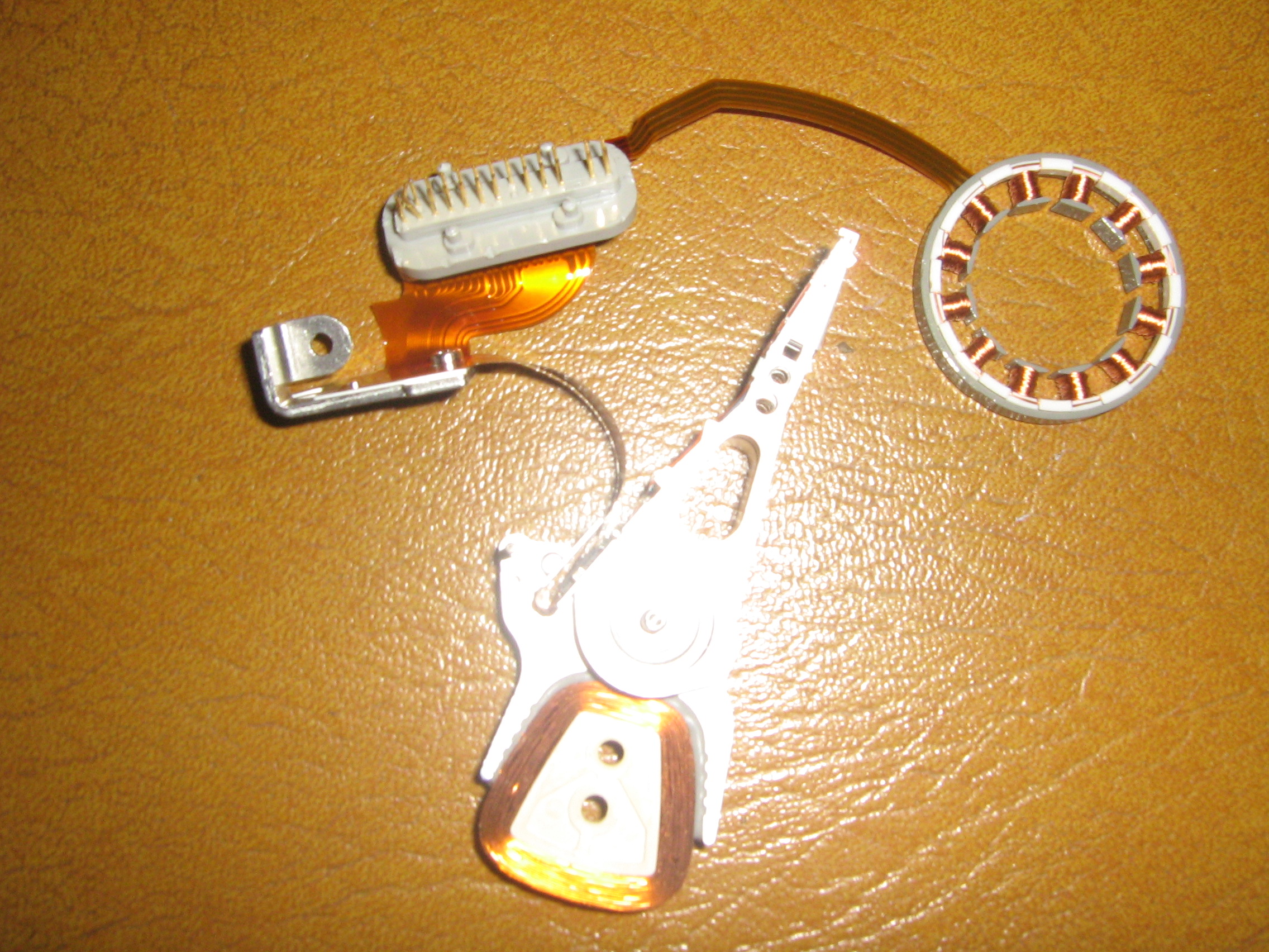 The first photo appears to be the actuator arm assembly and motor core from a hard drive. What I've done with my arm assembly is I've clipped the end with the pins on it and put them in my bag of cable ends, then pulled apart any copper windings from the back of the reader arm and put with my #2 copper wire. The motor core I put with my transformers/CBMs, even though you have gold contacts and aluminum enclosing the assembly. The reader head itself is aluminum, even though you have precious metals on the tip, it's not enough in my opinion to separate. Put that with your aluminum. Any data cables you can put in with your mixed wire. And if you don't know what to do with the platters, boardsort will buy those, or you can sell them as dirty aluminum to your local scrap yard. Recovering the precious metal off the platter surface will require a few thousand platters and a lot of acid to get anything worthwhile, so leave that to the refiners who do this stuff for a living.