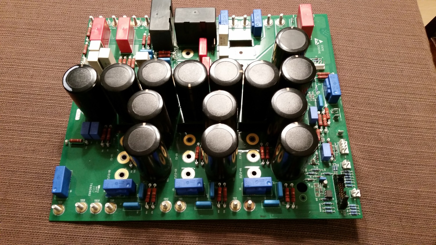 I'm curious as to what the blue, red and black boxes are on this board. I'm pretty sure the black cylinders are capacitors (can these be sold at all?). I cut one of the blue ones open, they are plastic filled and contain both magnetic and non mag metal. The black ones contain what appears to be many sheets of aluminum foil and haven't cut a red one.