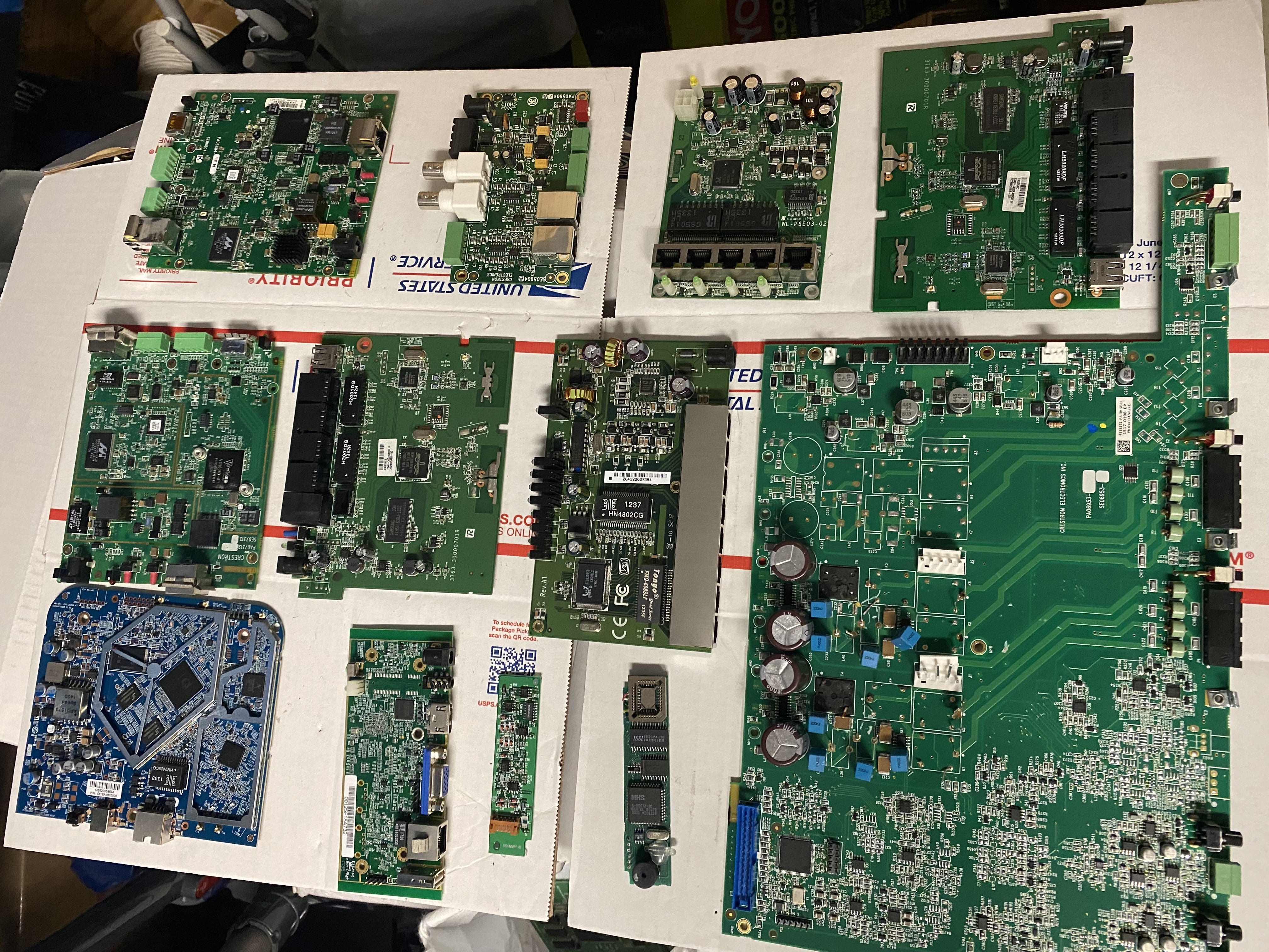 The largest board and the smaller rectangular board on the left might not make it to high peripheral but that's where I'd place them. After all, it looks like someone went to the trouble of removing some lower value components on the big board so hopefully it was worth it.