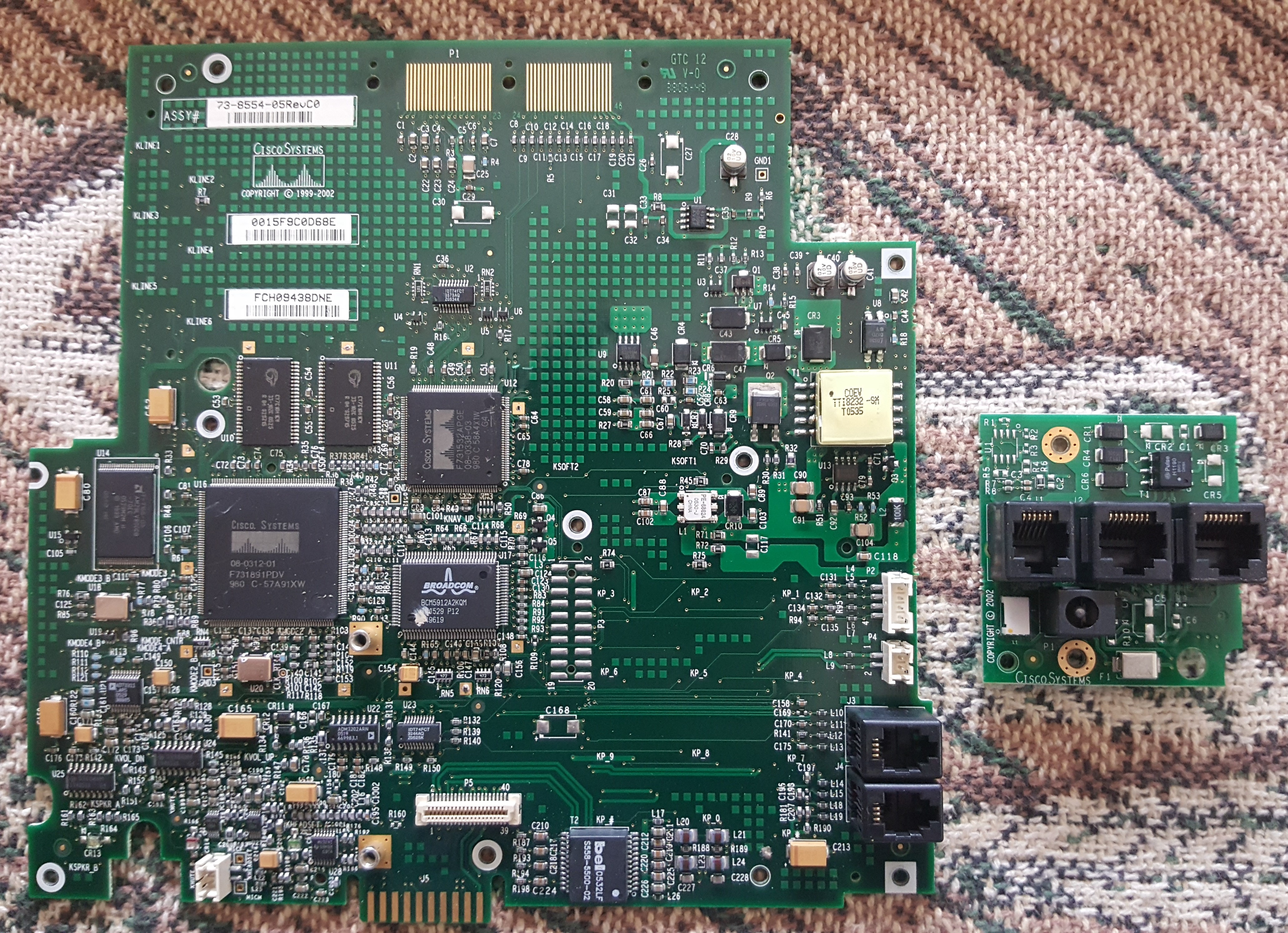 The big board is hard. I too am tempted to say Low Grade Telecom, but to be safe, I would just send it as High Grade Peripheral and see if it gets upgraded. The small one should be Low Grade Peripheral like marked141 said.