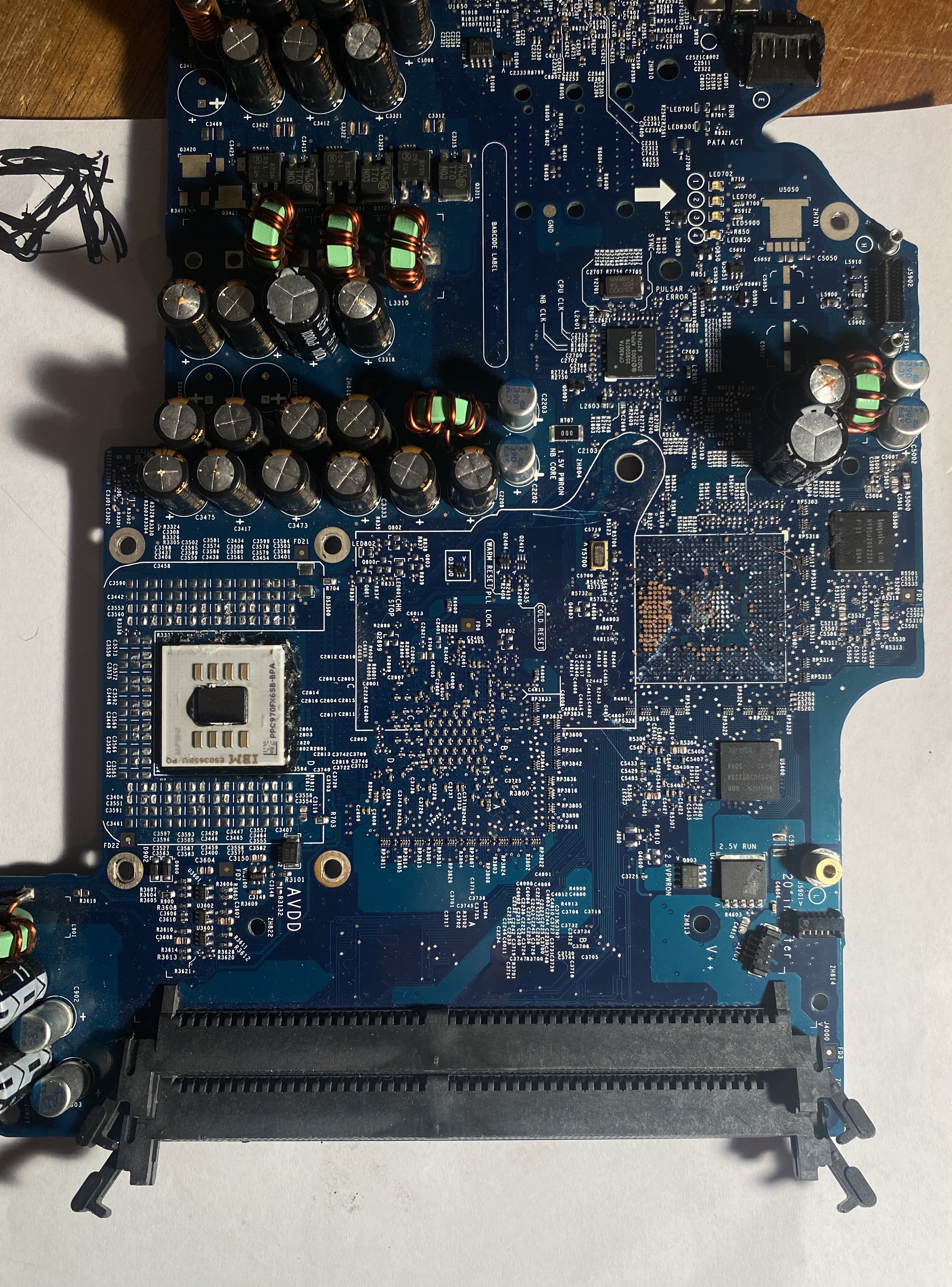 2 Not sure Apple boards can vary a bit by model; did a chip get pulled off on the right lower half?