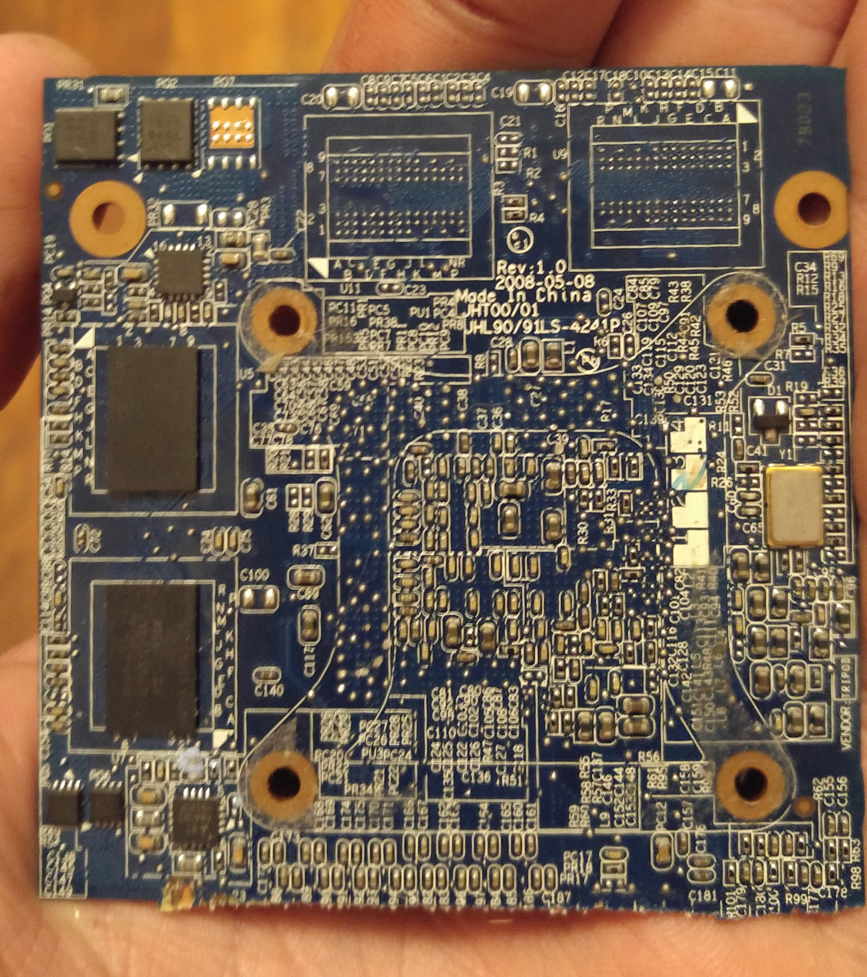 it looks like it was part of a laptop motherboard, or maybe a card that had fingers removed....