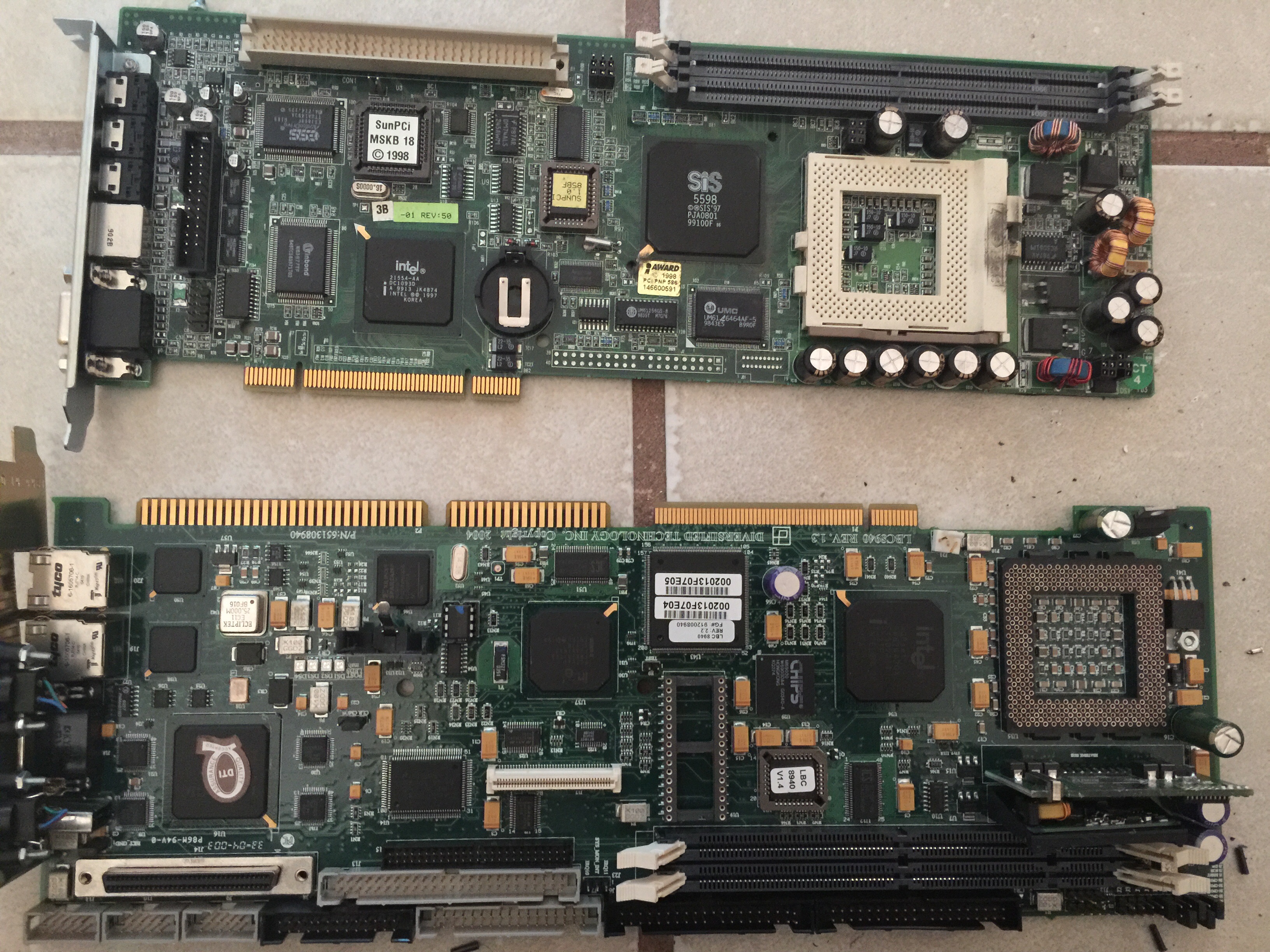 Top board is an "88". They are compatibility boards fir sun servers allowing out-of-step co-running of x86 code on sun servers. Originally developed by Microsoft in 1980/81to run ms basic on apple and hos kit computers