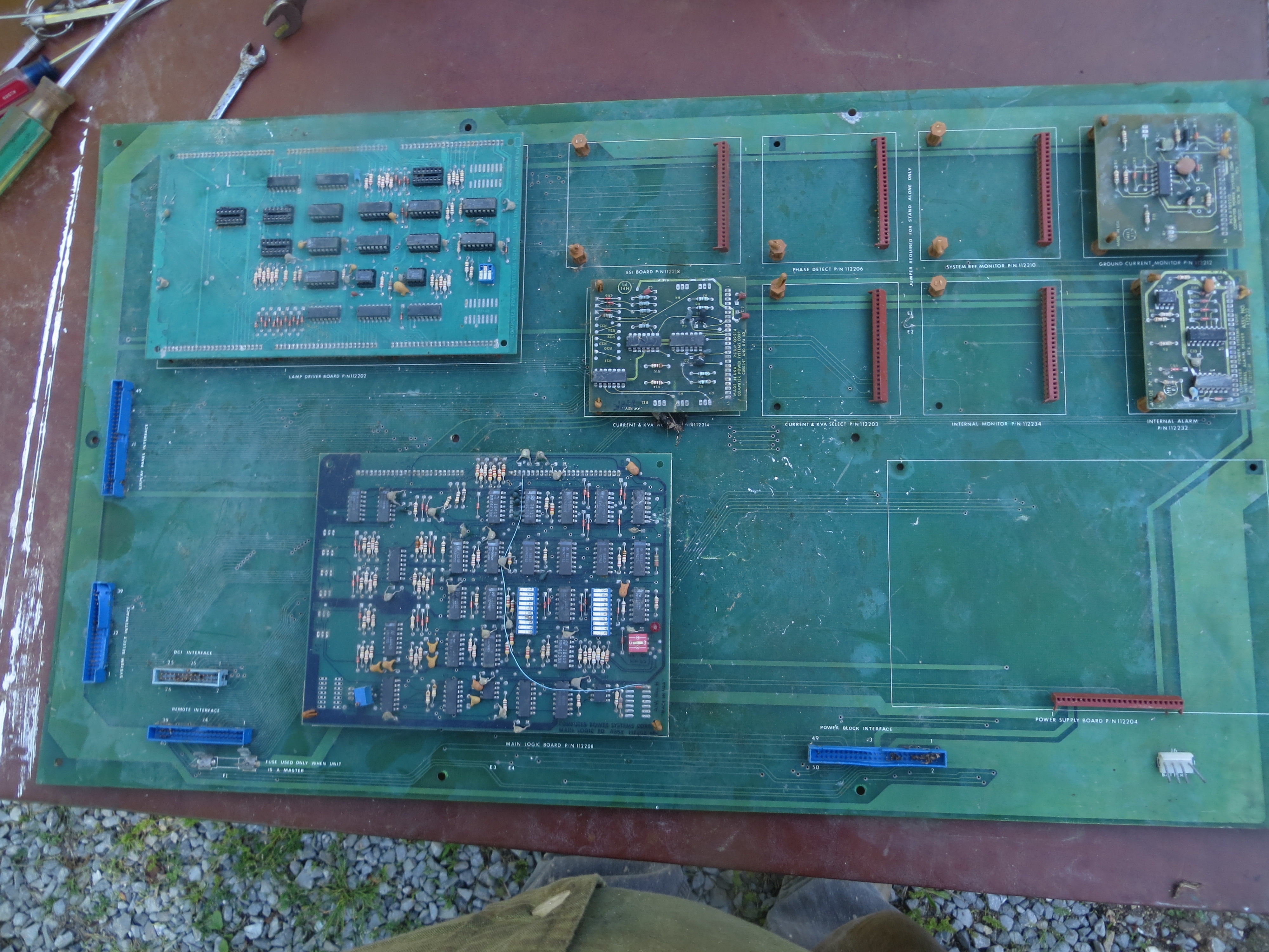 Nothing on the back of this thin board except the etching lines. Four small boards sitting on top on the front. Once removed, nothing left but eight or ten gold pin connector docks. I expect to use the thin green board as a light shade/ backlit "art" display as it has so little obvious value showing and so small weight as to be valuable only as reinforcement for box bottom. (note: board is almost two foot square)