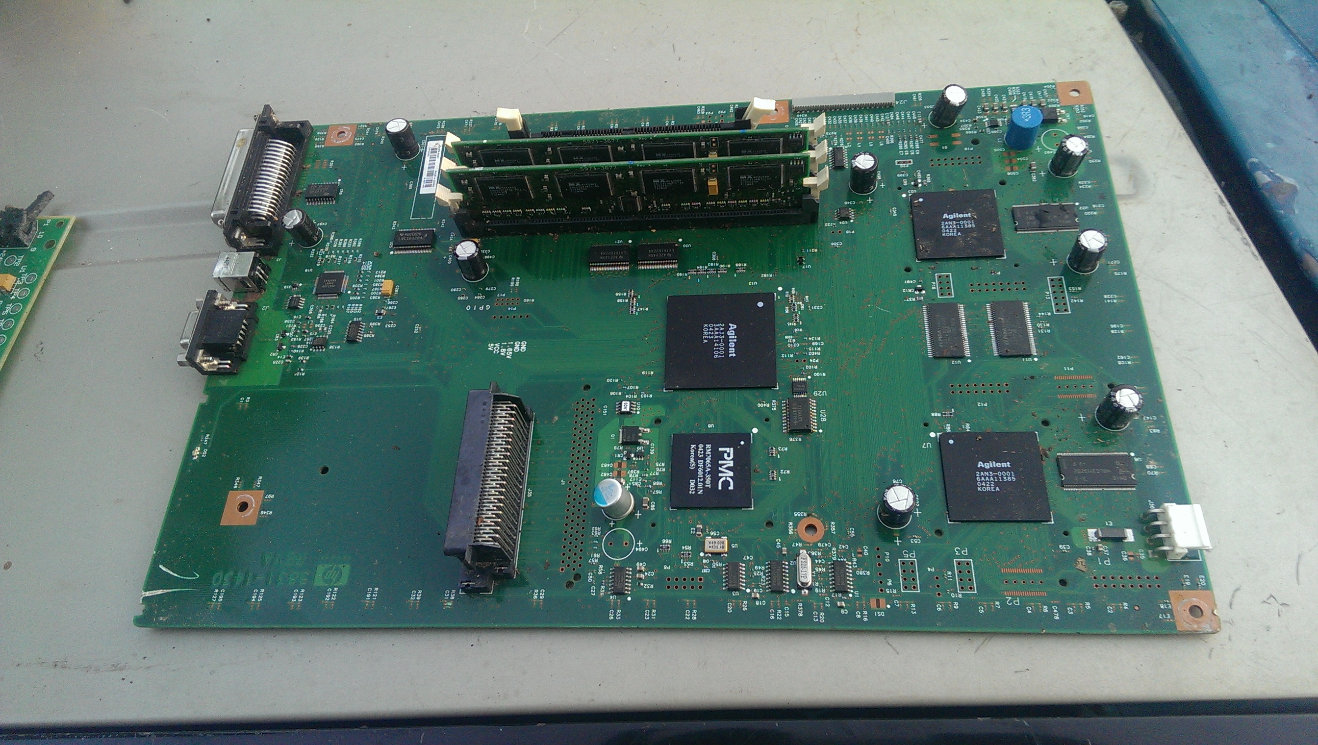 This board was removed from one of the large office copiers, which weighs about 250 pounds and sits upon a rolling low cabinet. The machine was probably vintage early 2000's and I think probably a Pitney & Bowes, but it could have been the HP or the Epson. I think it was the Epson, since I had four machines and now have four identical boards.