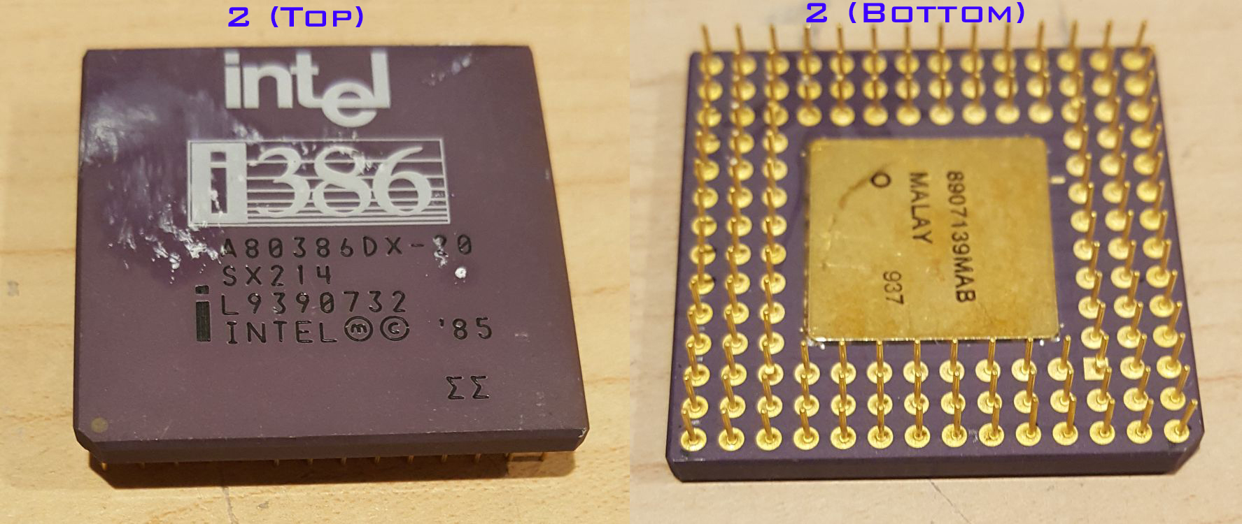Looks like a mix of foreign (original pentiums) gold caps and 386. The other side is vital for id