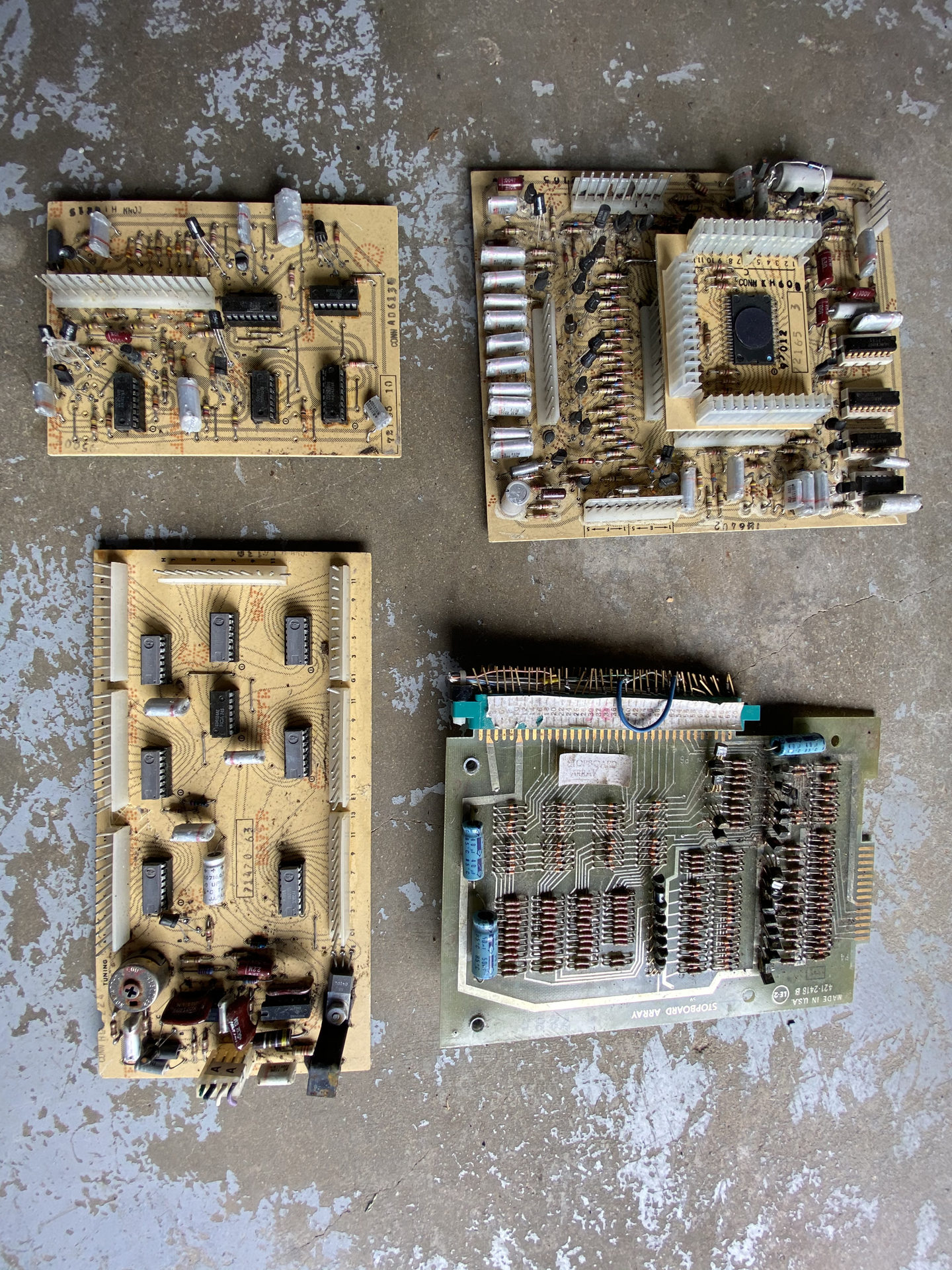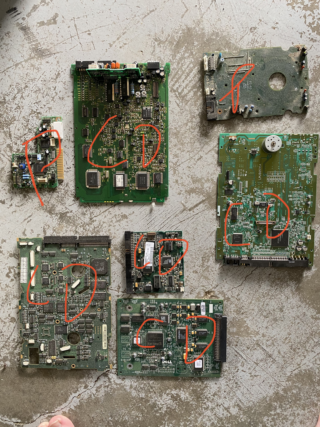 The ICs on these (minus the lower right board) was what mainly caught my eye. Also the top right has a second smaller board attached to some pins and can be pulled off. Any thoughts on any of these?