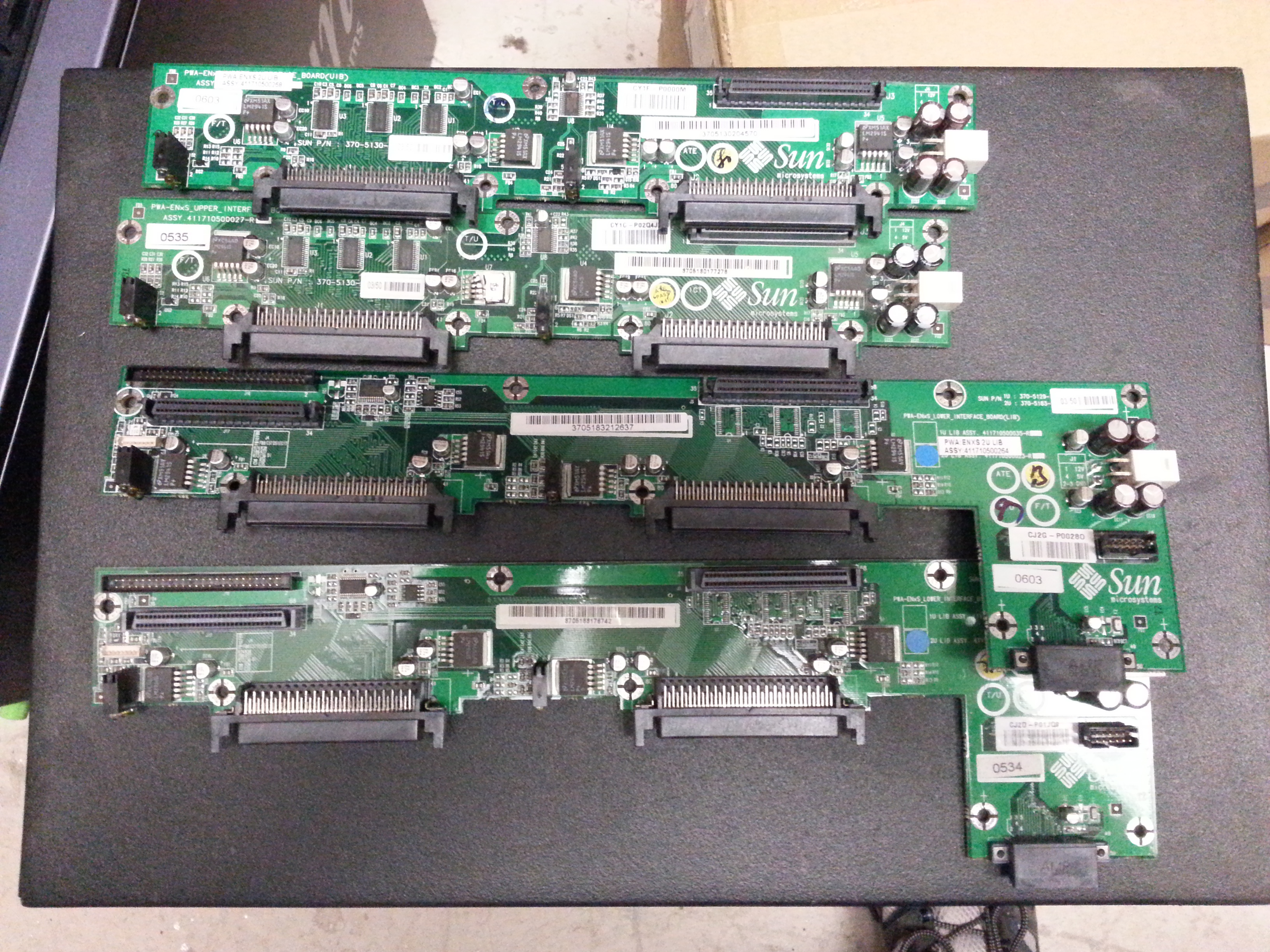 5) The two L boards MAY make backplane due to number of ports, two smaller ones probably peripheral.