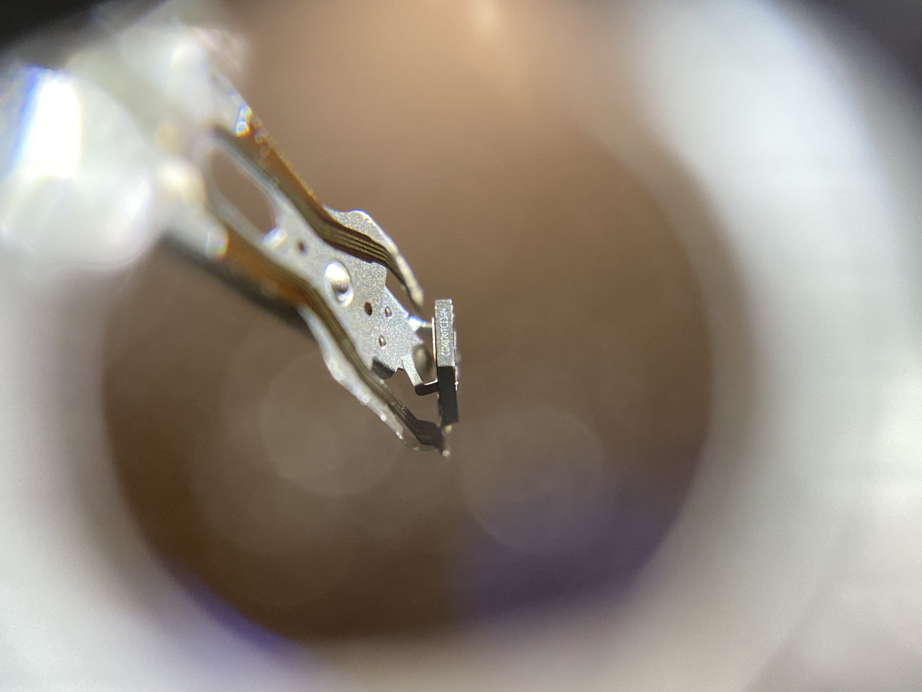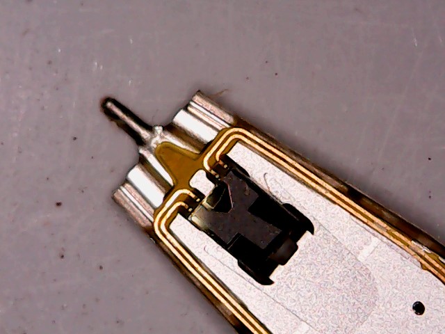 laptop harddrive actuator head - I don't see a drop of rhodium or anything on the end, is there anything good there ? i assume the gold colored stuff is gold