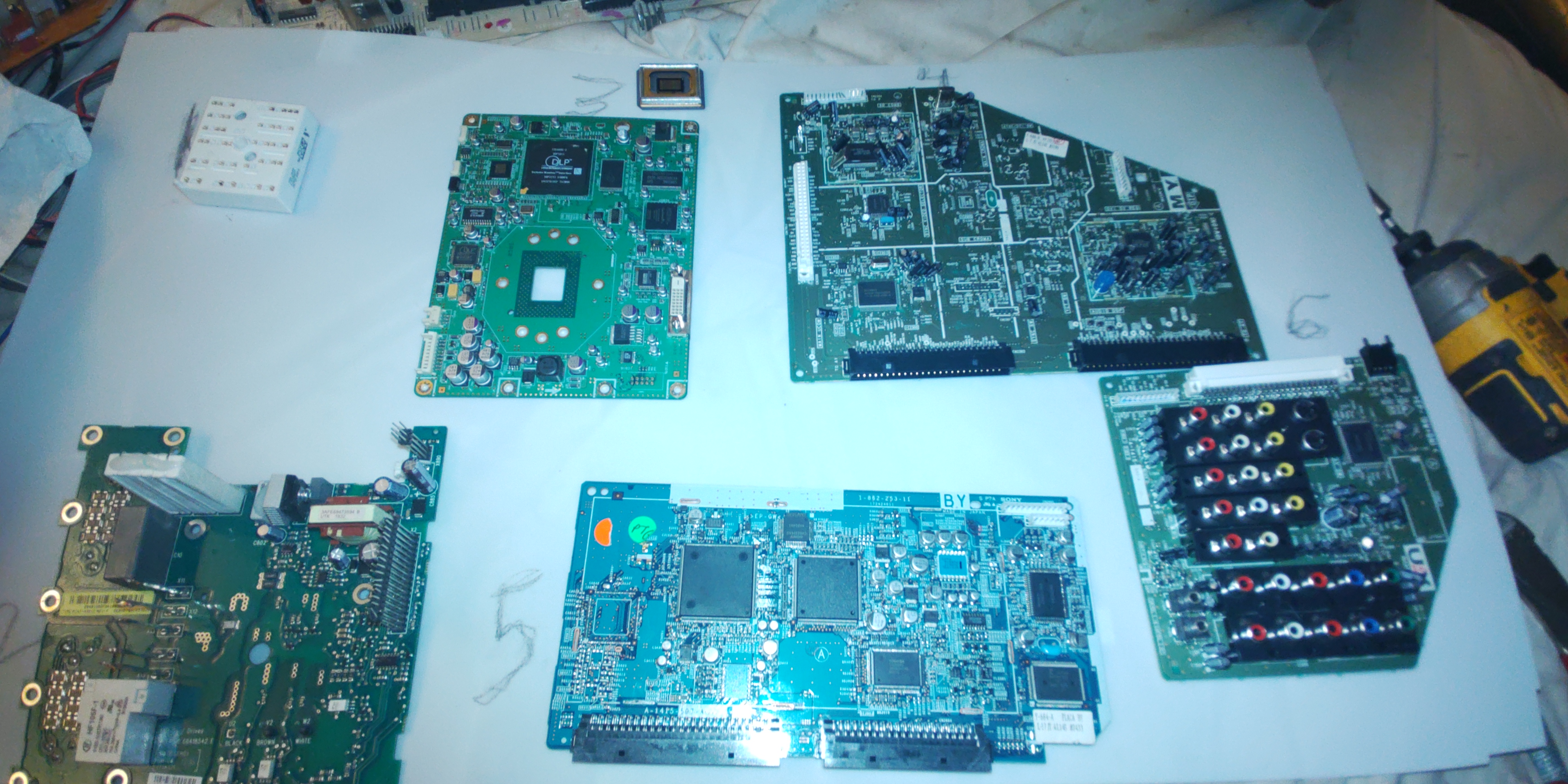 Board 3 is off a TV had tHe DLP ceramic chip mounted on it seen in picture two looks gold plate