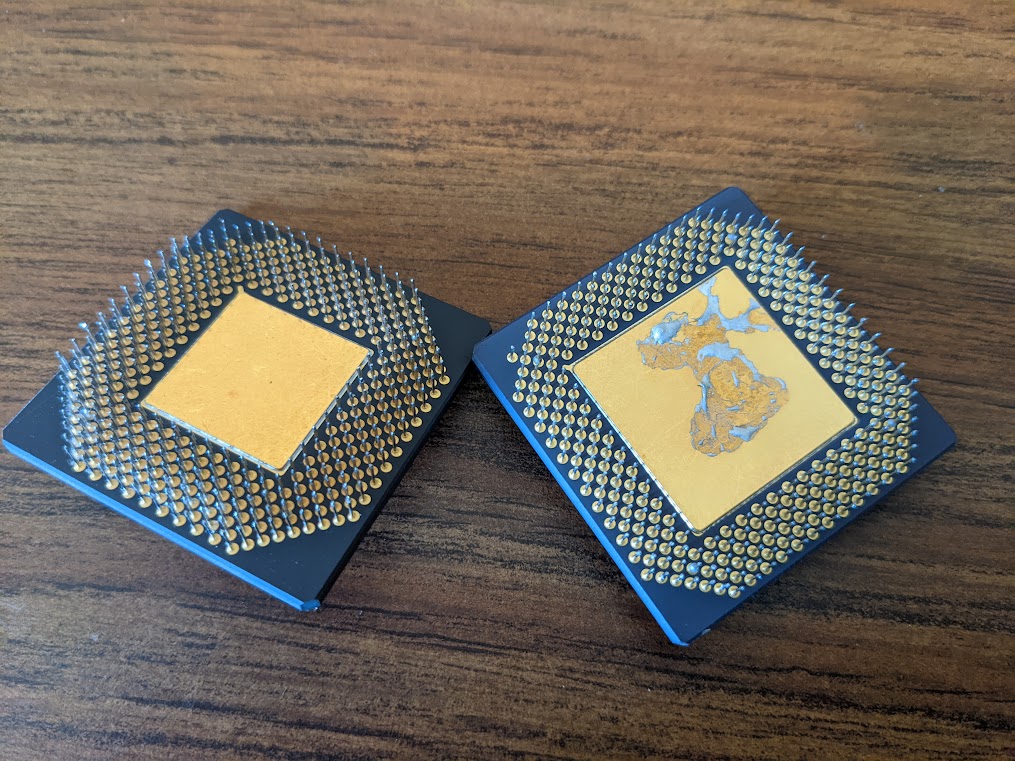 Here's a review of the same type board from 8 years ago. If the CPUs come off easily that would be your best option.