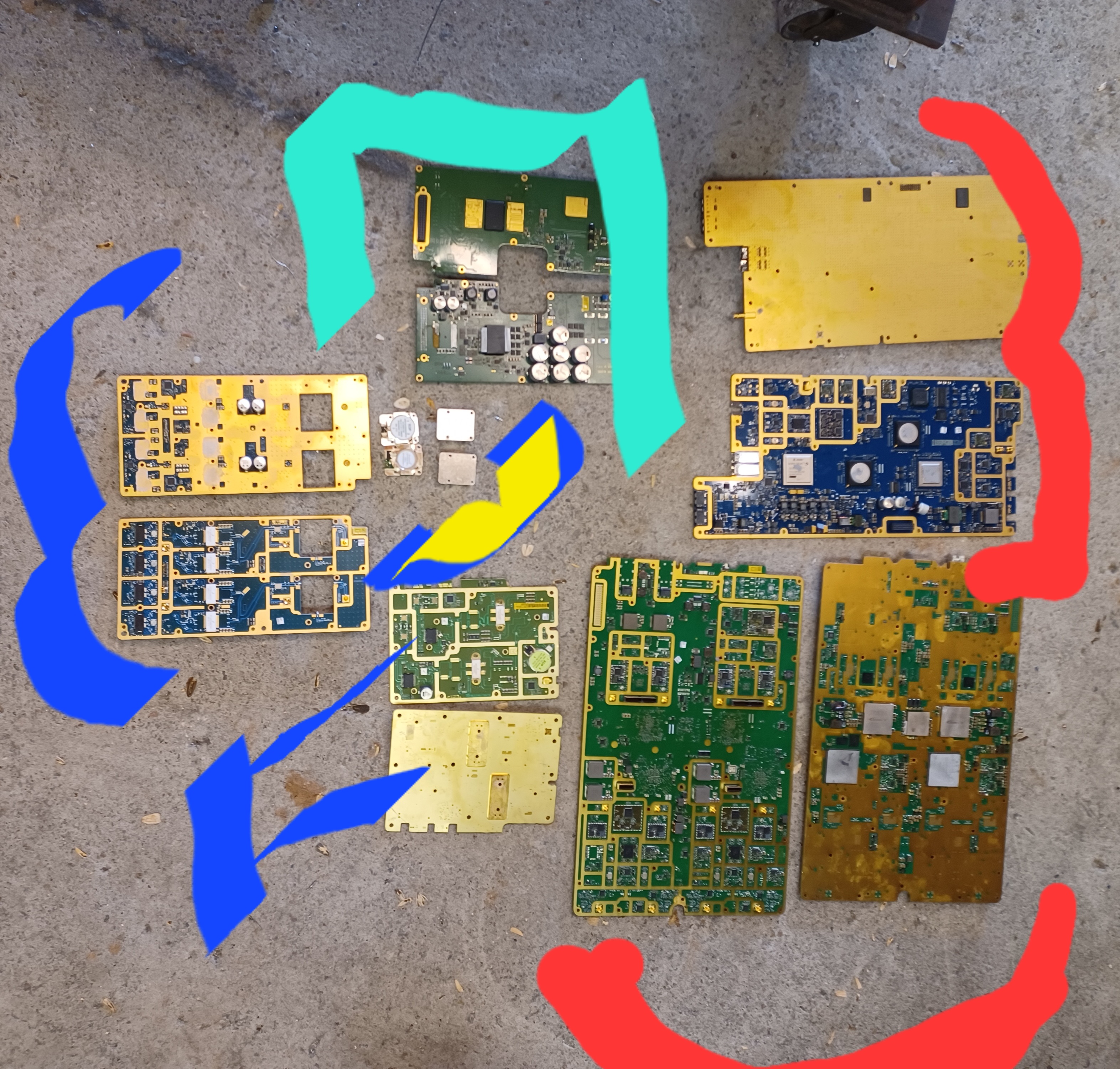 The biggest stuff is high grade Telco, the small is low grade Telco, what are the other boards and the silver looking things that came out of them?