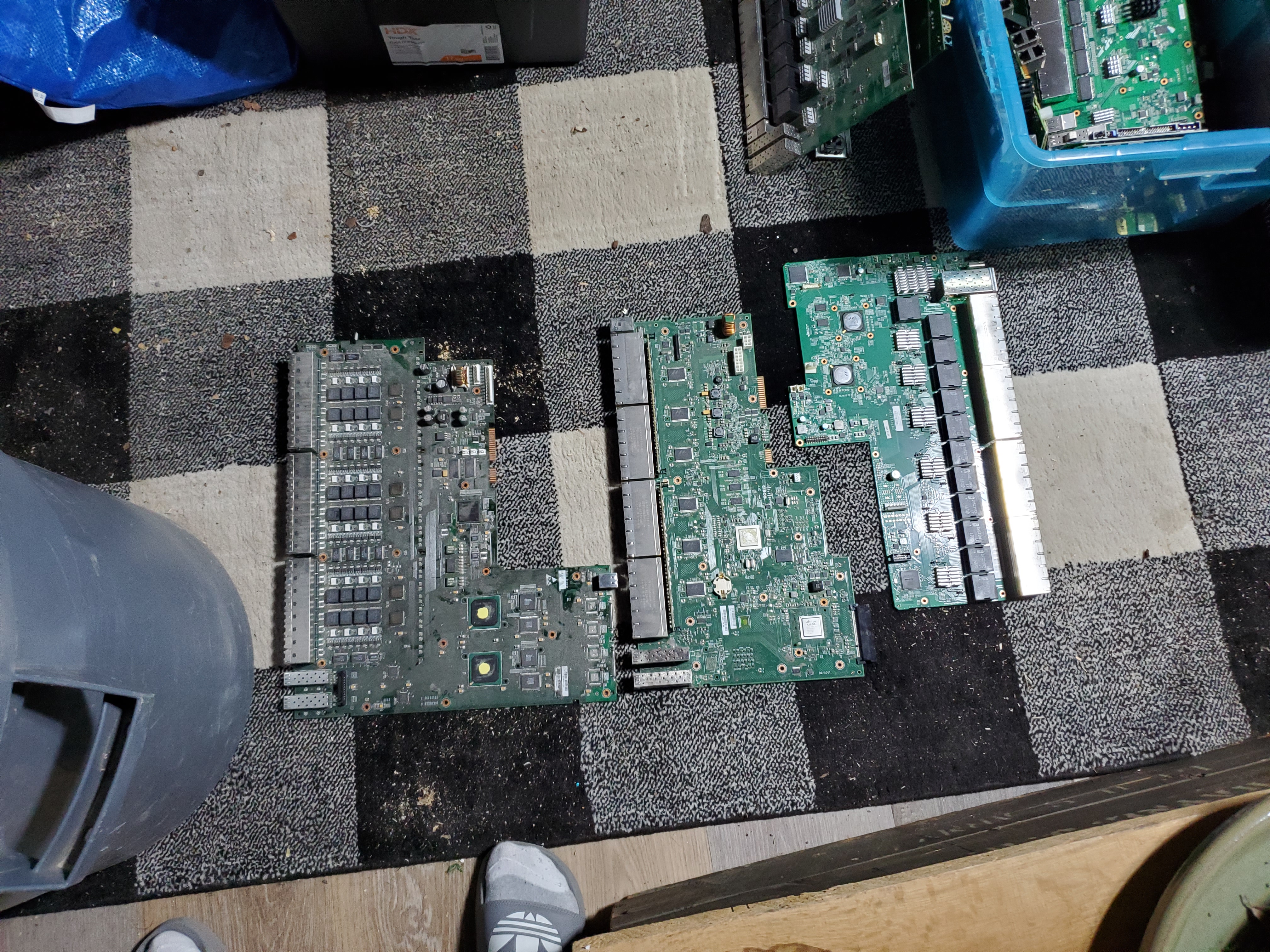 I think the picture is reversed once I click on it. Let's number them for ease of explanation. I think you are correct, with hi telco and low telco because I have a few of these to classify as well. #1 & 2 low telco because of gold tab flatpacks and gold fingers. Remove the aluminum heatsinks on #1 to get the most value. #3 seems like it would be hi telco because of the gold tab flatpacks and I think those fingers are gold too, but they look like copper because of the lighting.