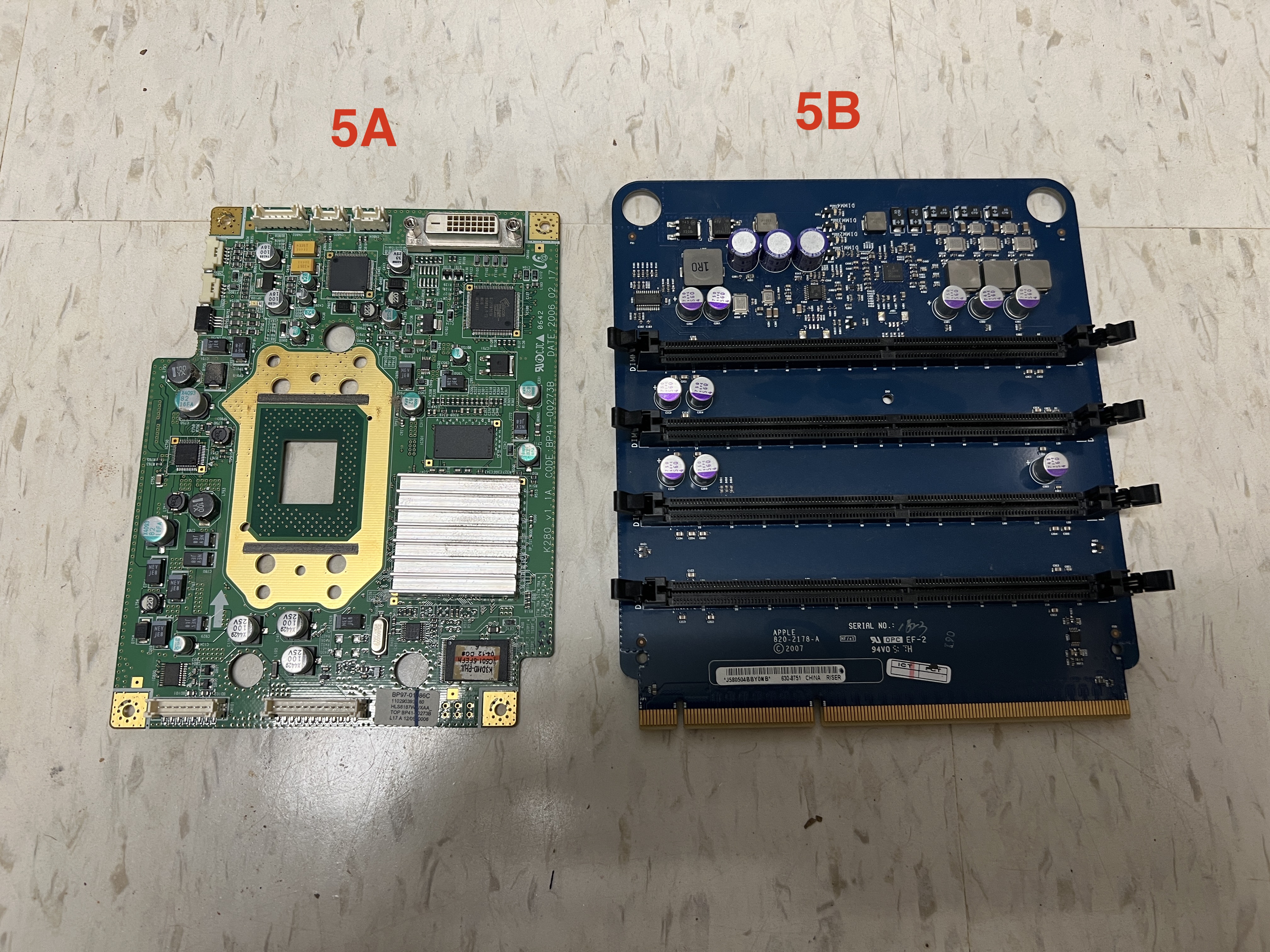File comment: 5A: Video out board from projection TV 5B: RAM Riser card for 2006-2008 Mac Pro