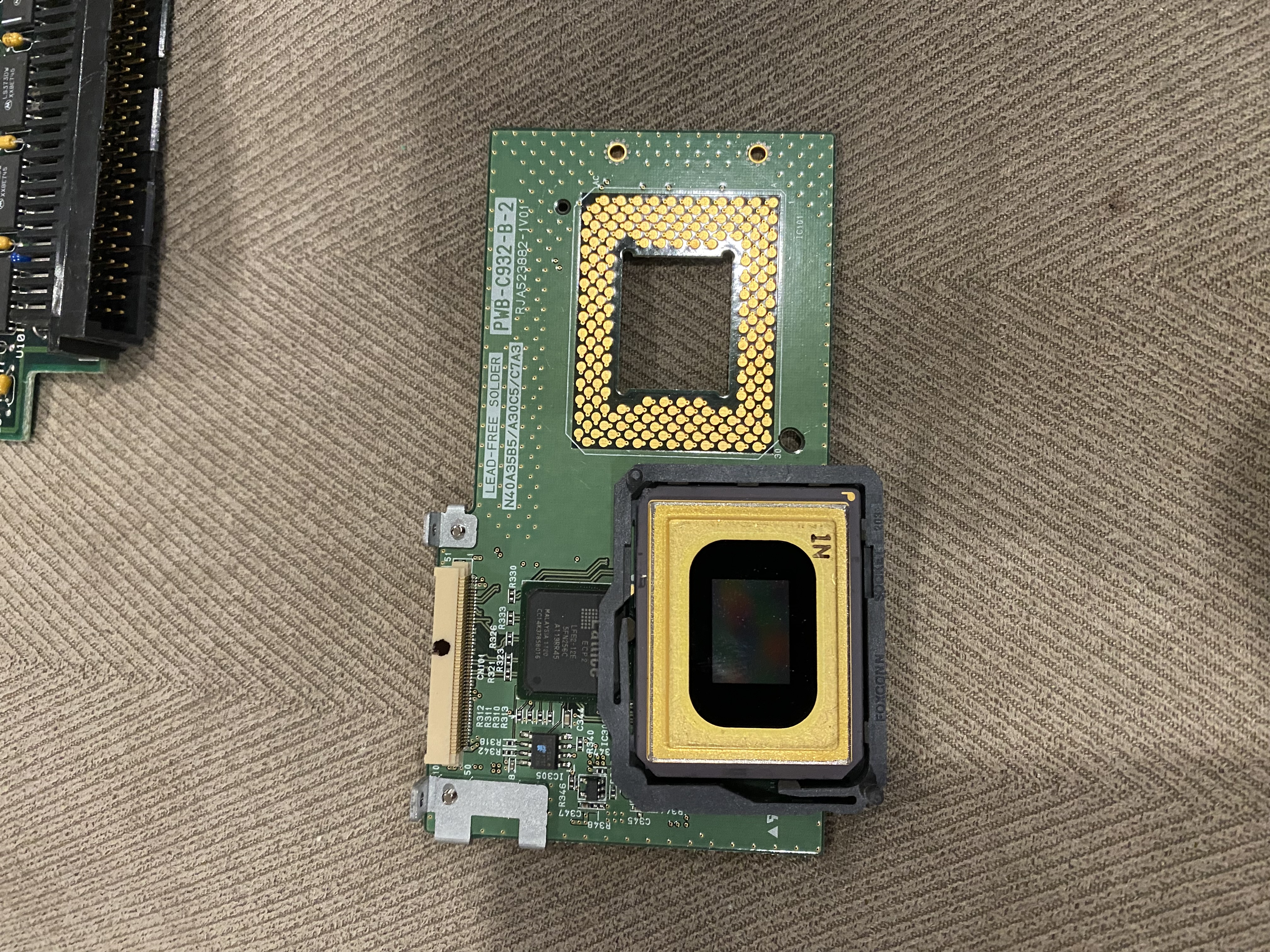 next is two pictures of a DLP chip sitting on its board. The chip is DLP and I have sent the boards as high peripheral without problem.