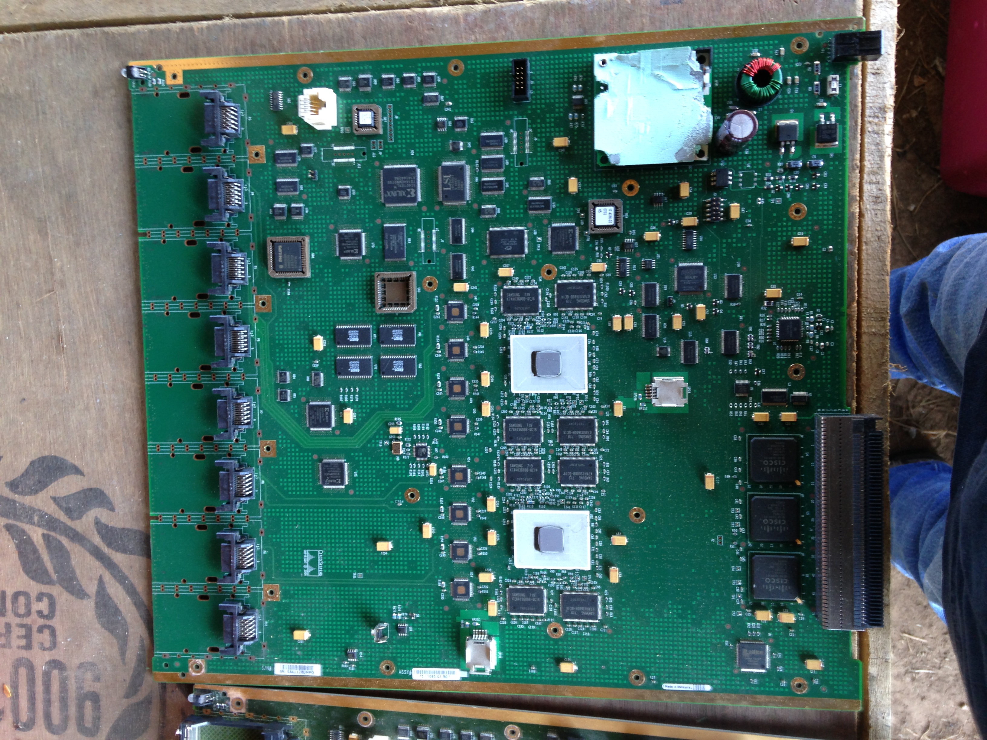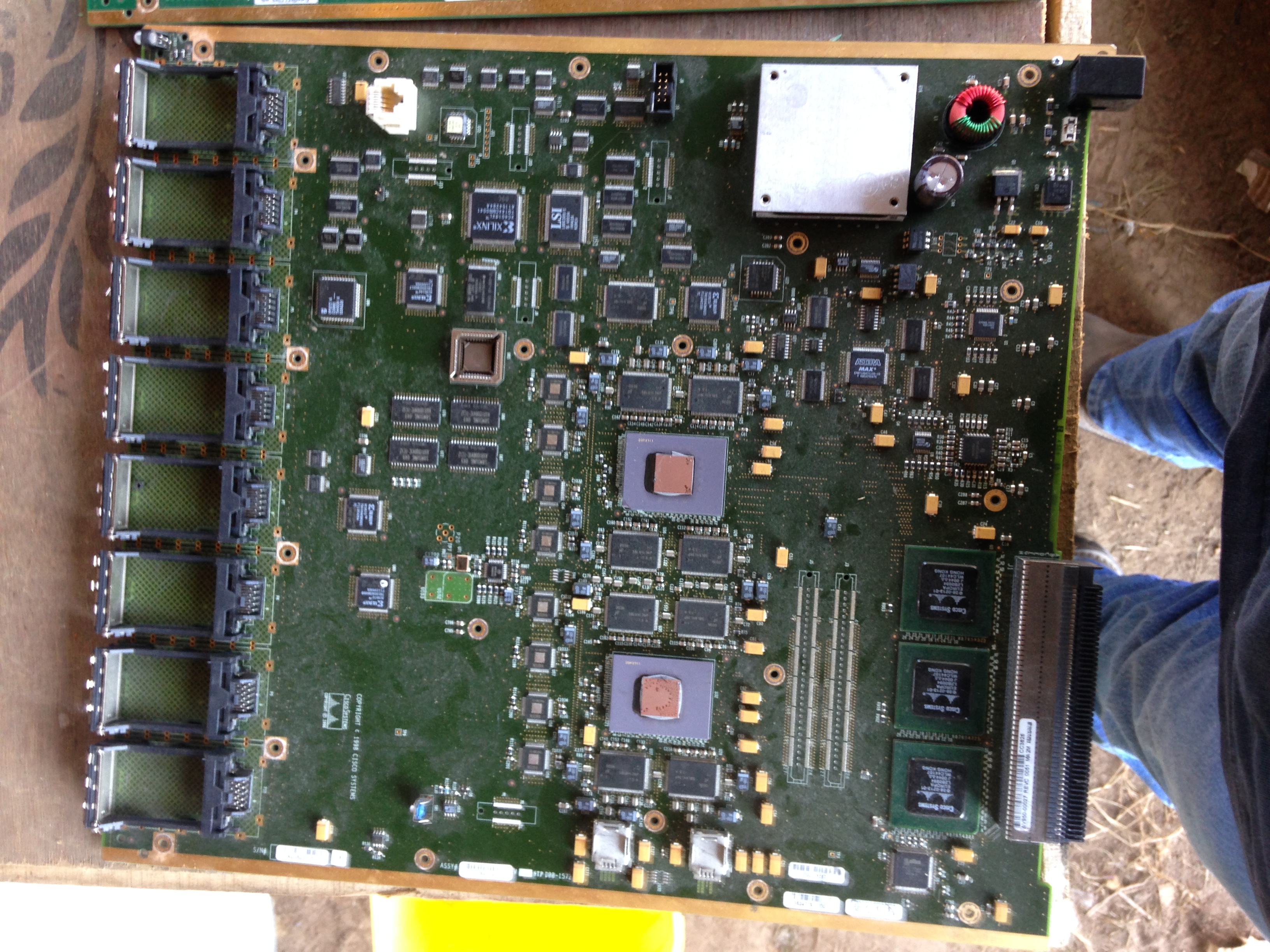 I do however see 8 serial bus ports, two ceramic controllers, good IC population, flashing, and a giant bus socket on the edge, so large socket looks probable.