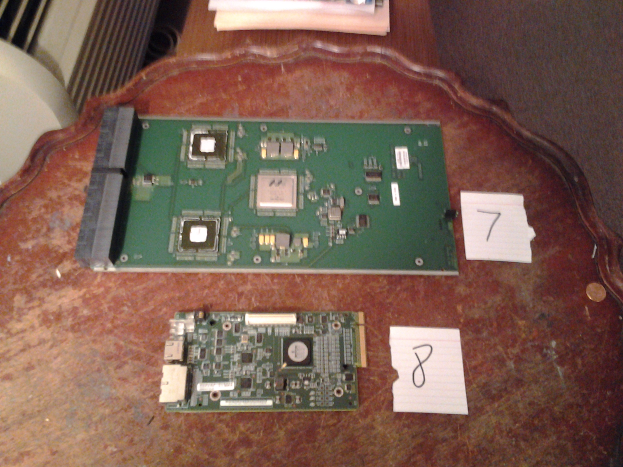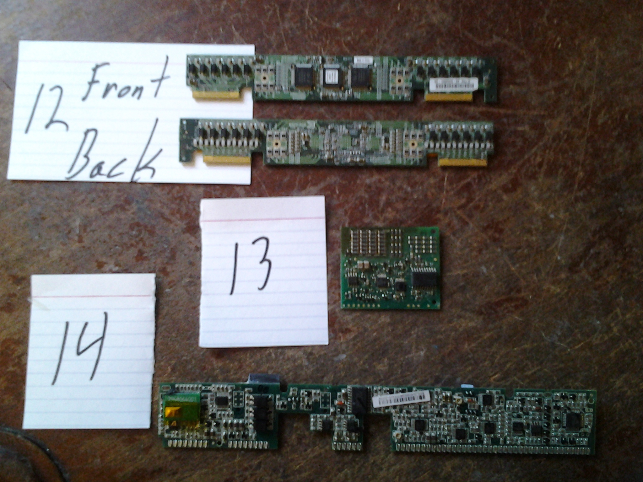 Hi everyone. The boards I most need double checked are; #4 blank board with gold connector will it go peripheral or take off connectors for mid? #6 telco? #7 enough population for peripheral? # 10 low ic population, high tantalum population will it go peripheral #11 smallest backplane ever? (half size of credit card) #12 does it go as ram or gold finger card #15 I would think telco, but had similar board go green fiber w/out metal. Was I close?