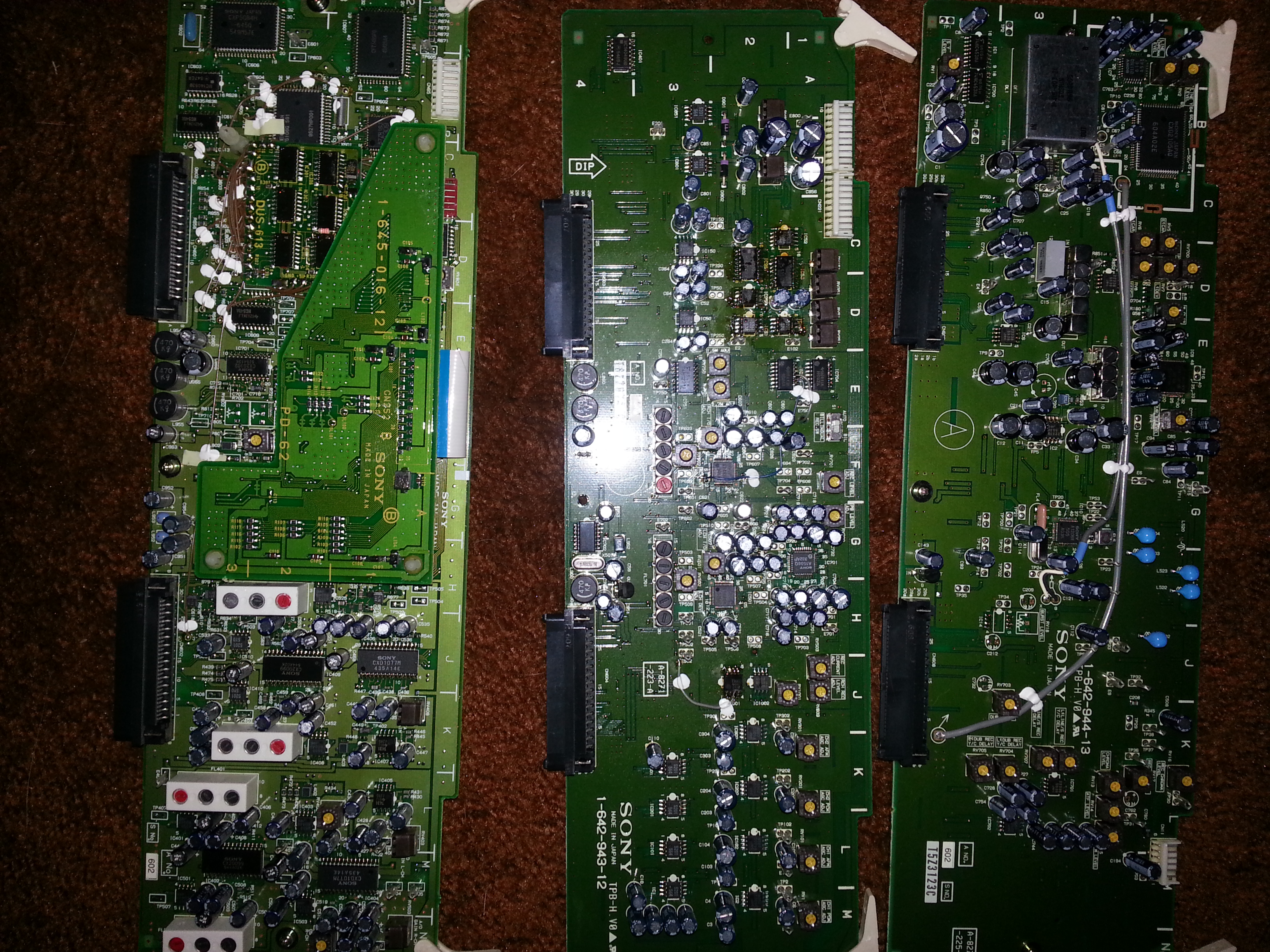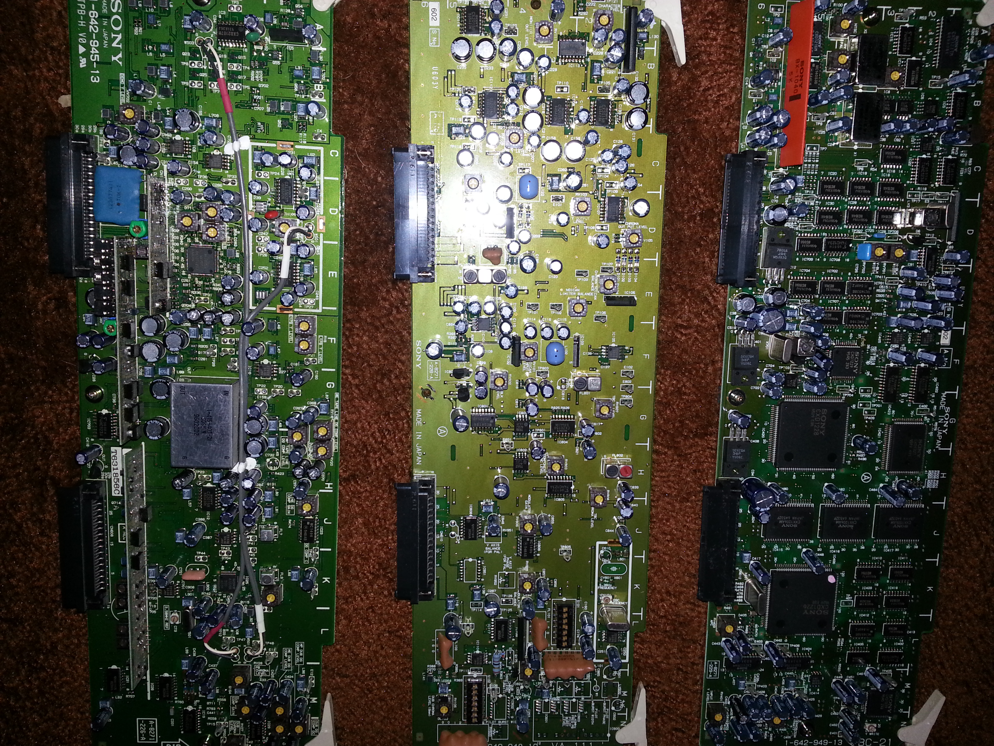 These boards are from a old Sony Hi 8 VCR. Can i get some help in grading? They have alot of caps and some chips mainly.