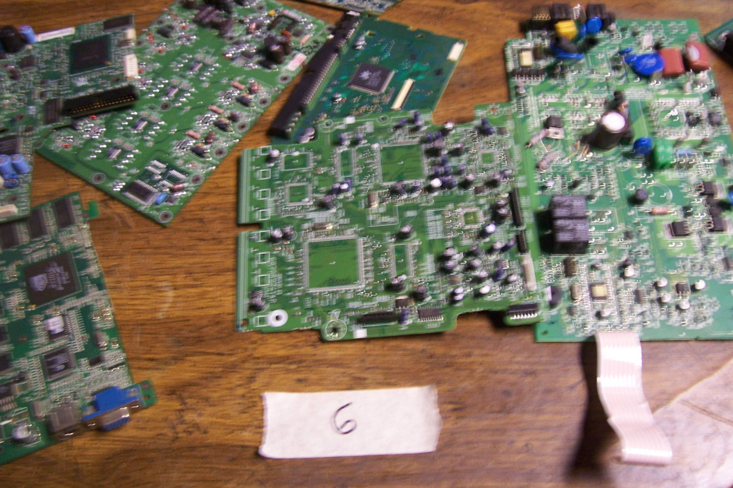I am used to selling computer parts online but my I lost my regular buyers info when I had a computer crash. Would you please look at these pics and help me grade them according to your standards so I can put a package together for you. No. 1 should be small motherboards, No. 2 looks like a large size pinned cpu was on the board but the pins are still on the board. Please advise me how to grade and should I remove the cpu pins since these prices don't include cpu's on the boards. If you should want me to remove them I use a heat gun so they just fall off when the solder gets hot so nothing is damaged. I just need advice on how you prefer the material prepped before I ship it. No.'s 3 and 4 I am unsure of how to grade. No. 5 should be a large motherboard but it has lain outside in the weather and gotten somewhat dirty, I cleaned it best as I could but need advice on grading it. No. 6 are assorted boards and the pic is a little blurry. If you need a better pic or ones with each individual board in it let me know. And lastly No. 7 , I forget what I think you call it but the gold plated edge has been clipped.