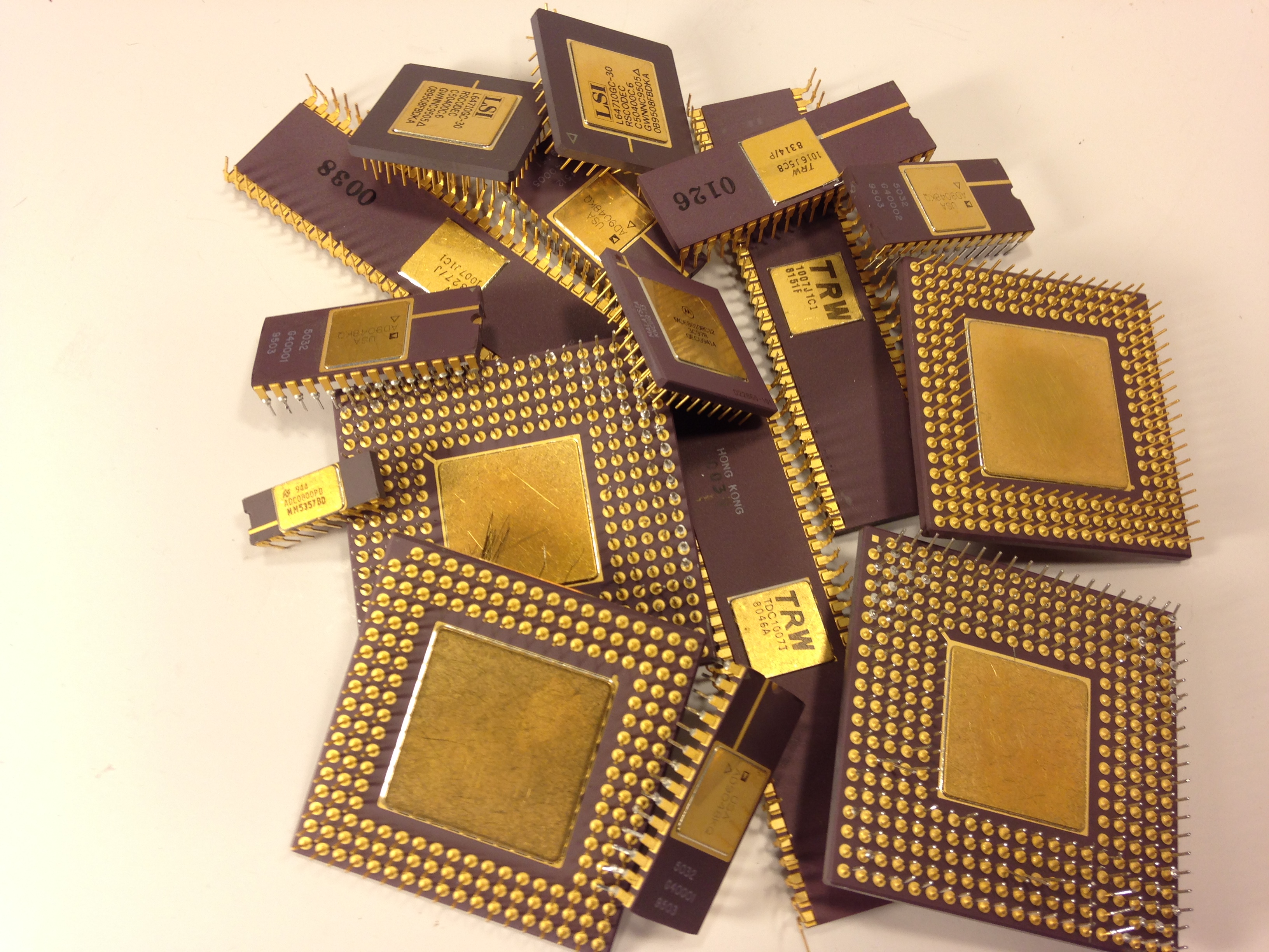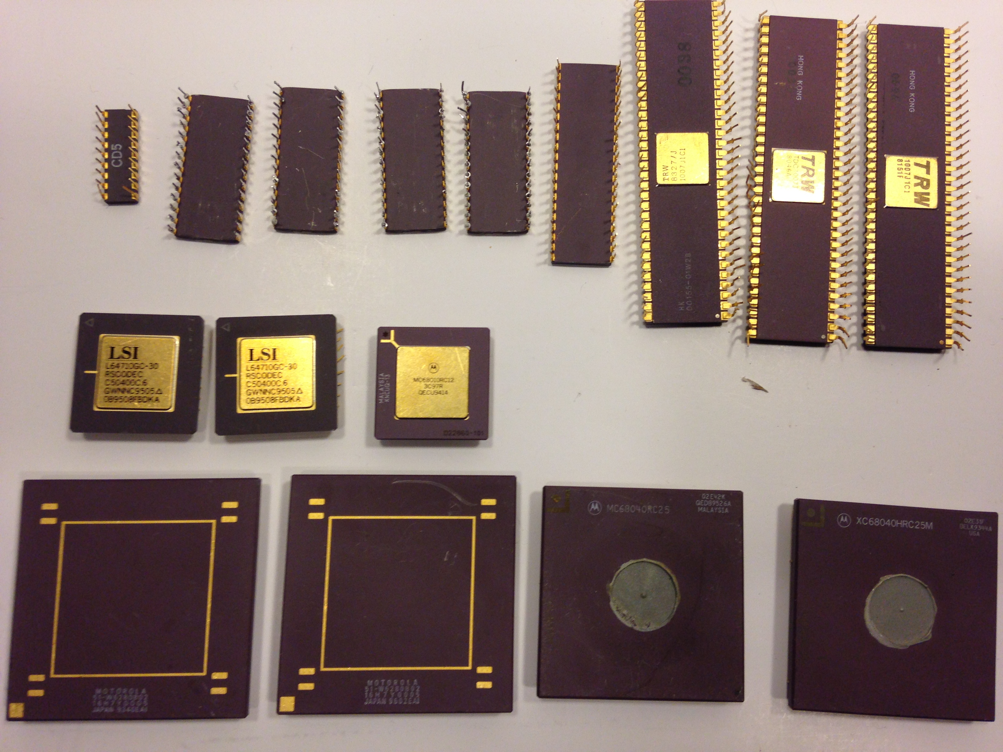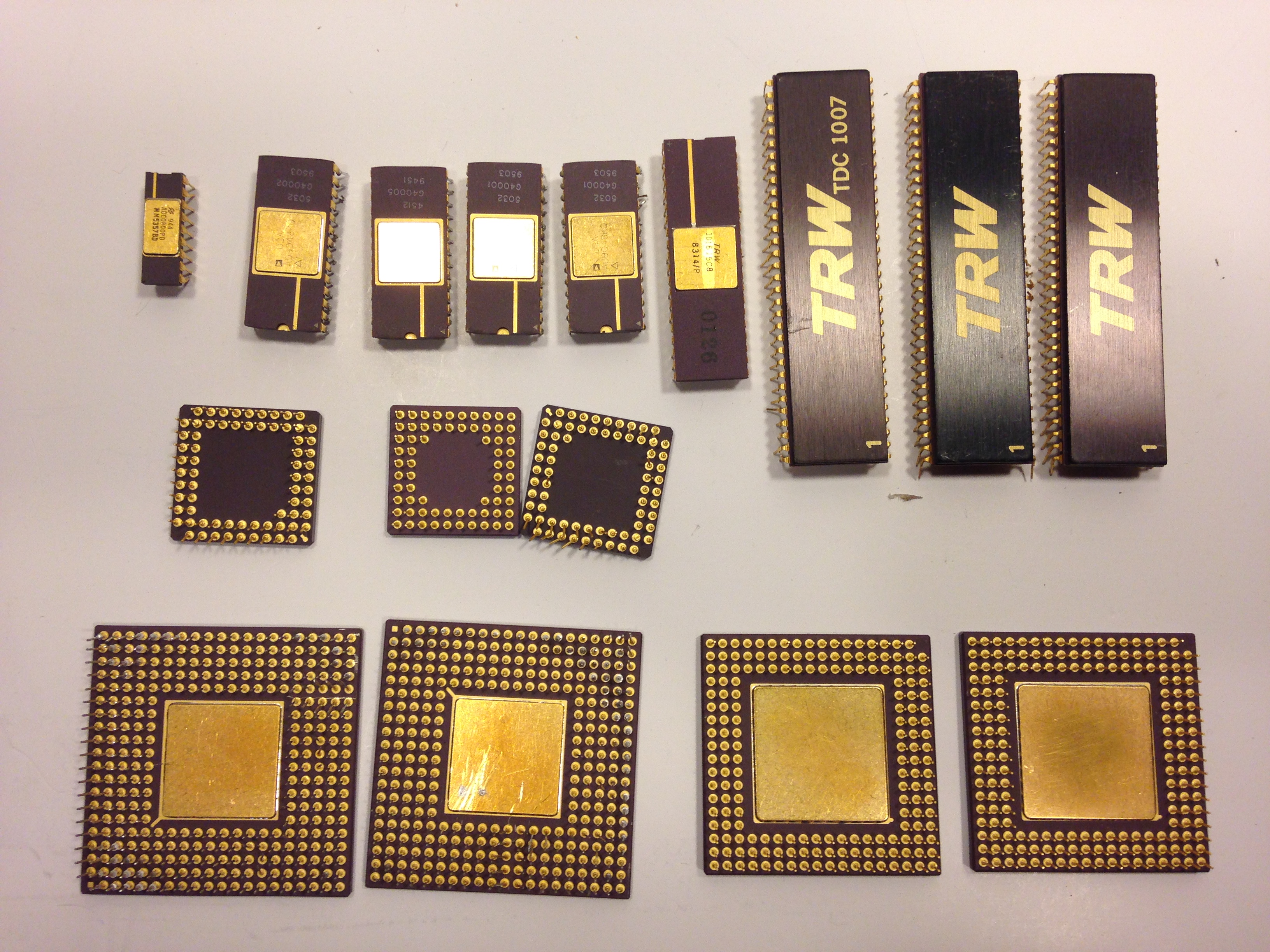 in the second photo, the chip with the gold cap and gold legs can go as an 8086. The other one may end up as a foreign gold cap.
