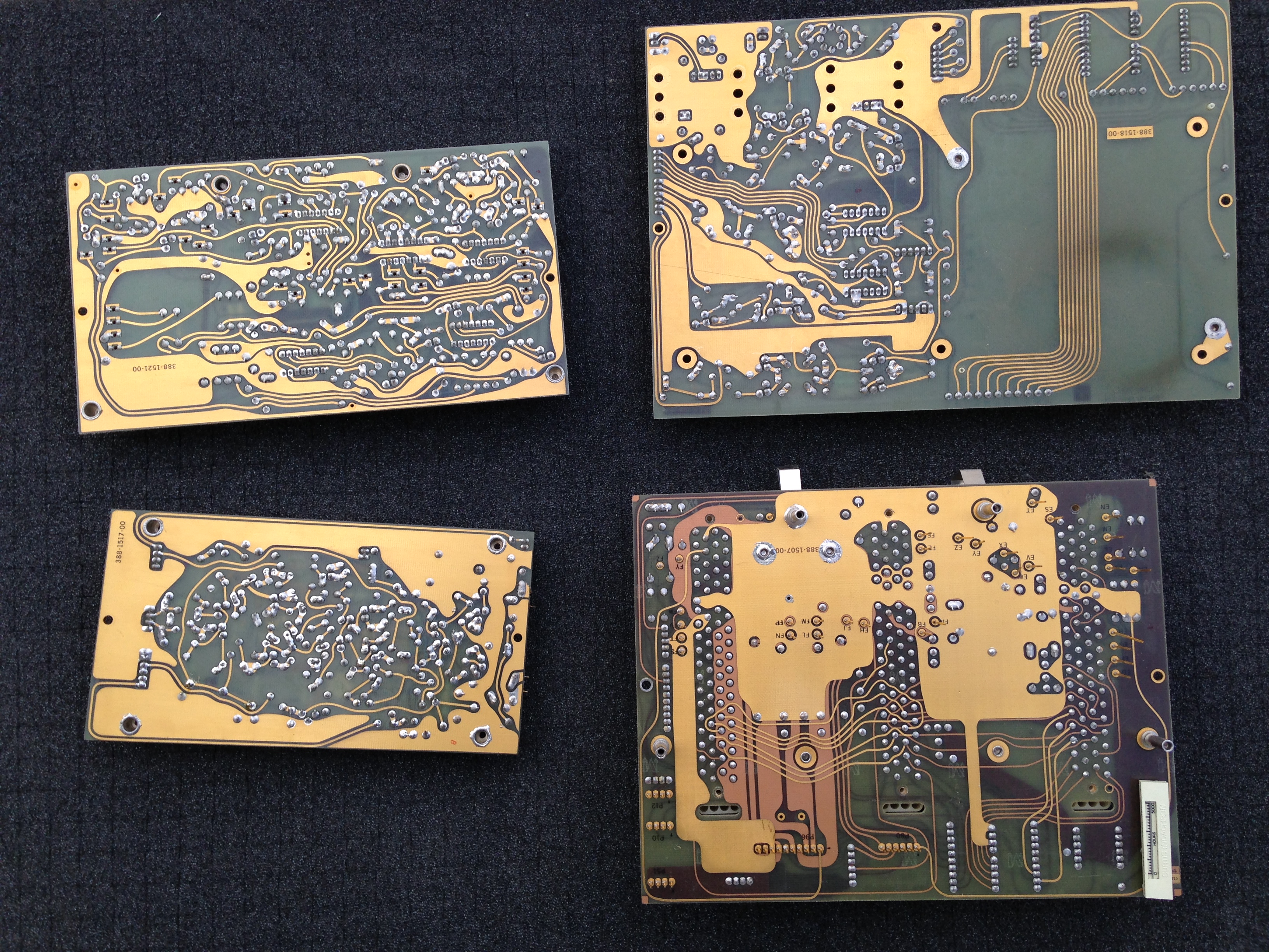 these boards from 1969 and 1970 are from an oscilloscope. They seem to be a lot higher grade than just telecom. Also there's a backplane from an old HP server that has been graded as telecom, but it is covered in almost a solid sheet of gold on both sides. What gives?