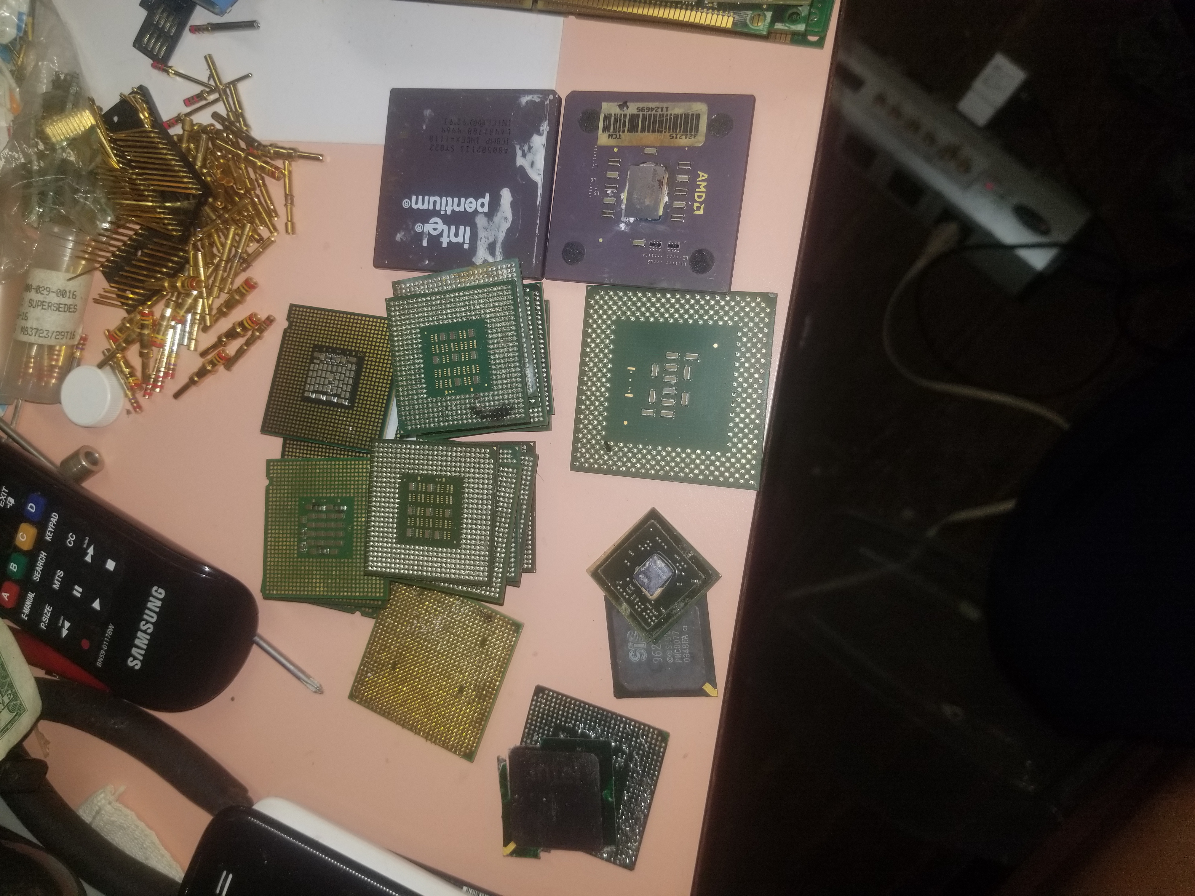 That last photo. Boardsort doesn’t have a posted class for gold pins as their is no preset price. They do buy them as part of an order though. When you fill out an order quote male note of the number for your order on the printout. Email Chris that number (subject order number xxxyyynnn additions) And let him know you are sending pins. Make SURE the pins are secured. Pill bottles work best. When they receive them Boardsort will scan them and determine the metal content in the pins and pay you based on all the metals and their ratios. That will be added to your payment for the boards and you’ll get a notice (most of the time) that says we’ve included $xx.yy for your pins.