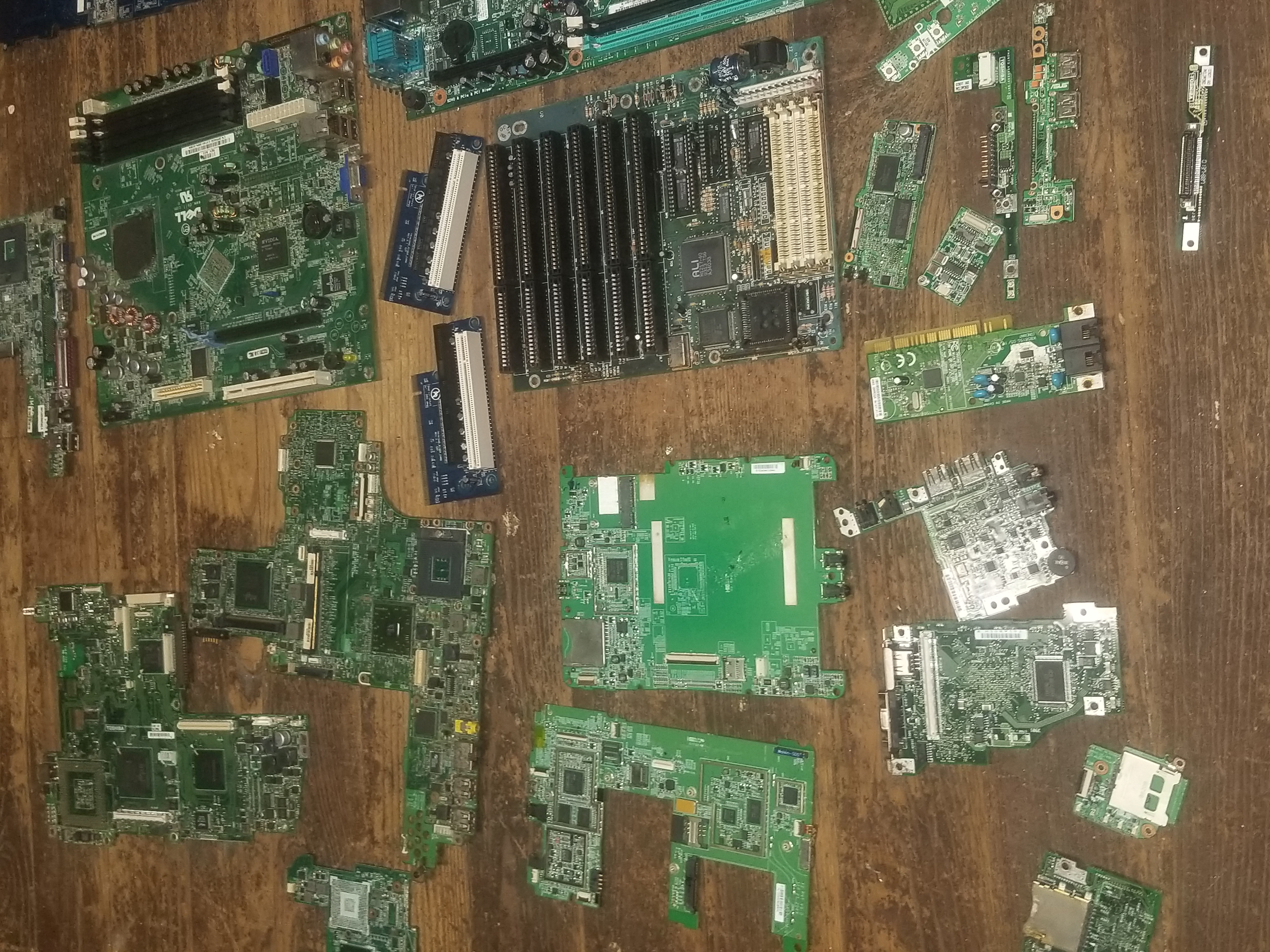 Many mixed boards. I’ll be back on this later peripher, small socket green motherboards, large socket, gold finger cards. I’ll come back to this.