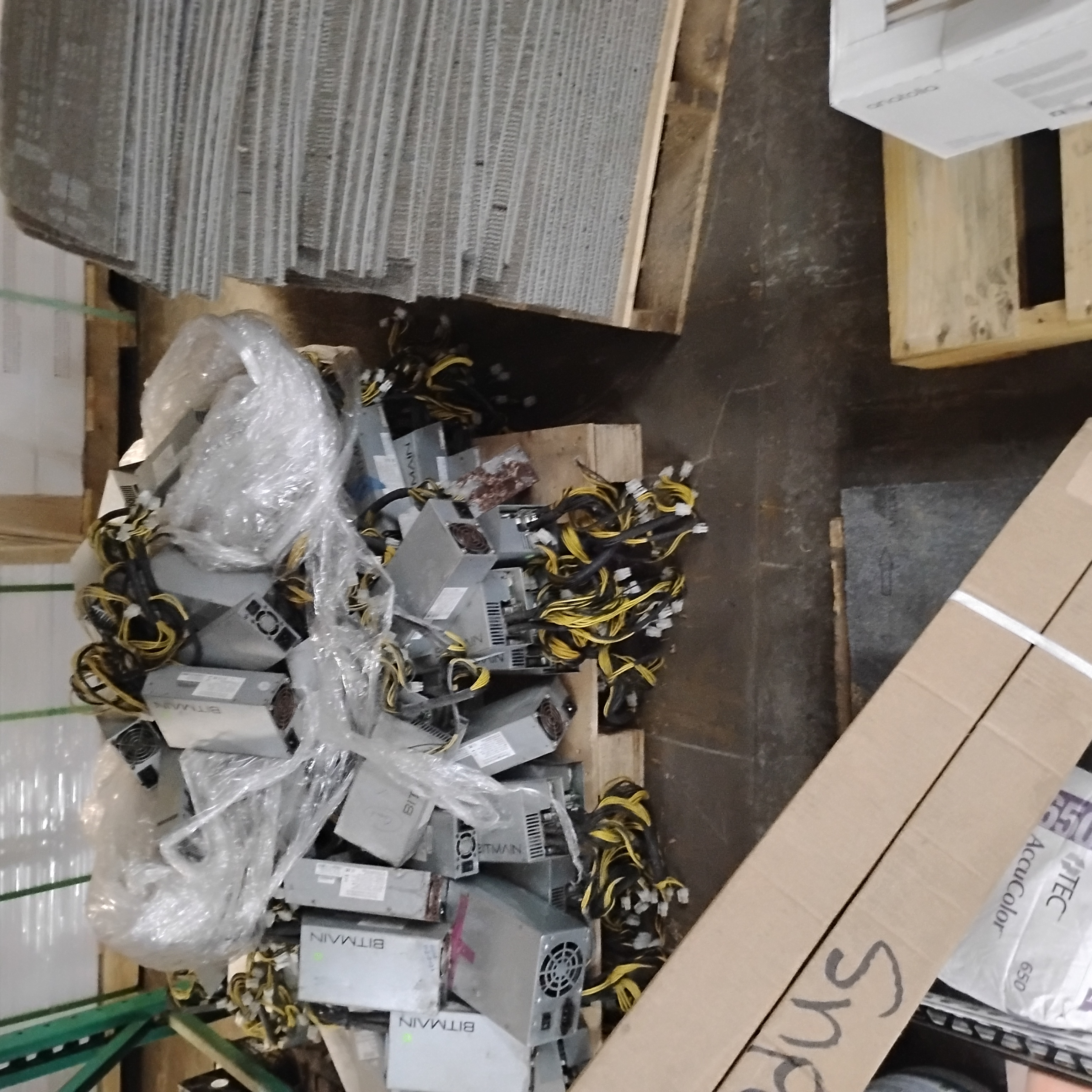 I looked at seven or eight pallets of antminer L3+ and power supplys today. I had bought two gaylords of non-working units for scrap last year. I am delivering the power supplys whole to Boardsort, as it is too difficult to remove them from the case and the screws in the midgrade board are all covered with a rubbery coating, which has to be dug out to get to the fasteners. While there is a good amount of aluminum and copper components, I don't see any profit in the excessive time to break down and clean each unit. Each plastic produce crate I have packed with power supplys with wire weighs 80 pounds, so scraps for about $36 , approximately $200 which will pay delivery in person expenses. The L3 units have a heavy extruded aluminum shell housing a high peripheral hashboard, or is it two boards. They are easy to disassemble and the bulky aluminum housing is saleable locally at a premium, leaving the boards for delivery to boardsort. The owner has multiple business ventures, and has decided to sell the historical factory building where he is storing these items. His first mention was to scrap the units, but mentioned that some good units are mixed in the pallets, and some untested units...again, a rough estimate is 500 units. I am not an electronic dude with knowledge to test the equipment/units, and abhor the idea of trying to peddle the material online, other than as a single lot. Still dithering over whether to offer shred price for the lot by weight, or a price per pallet, or just pass on the deal.