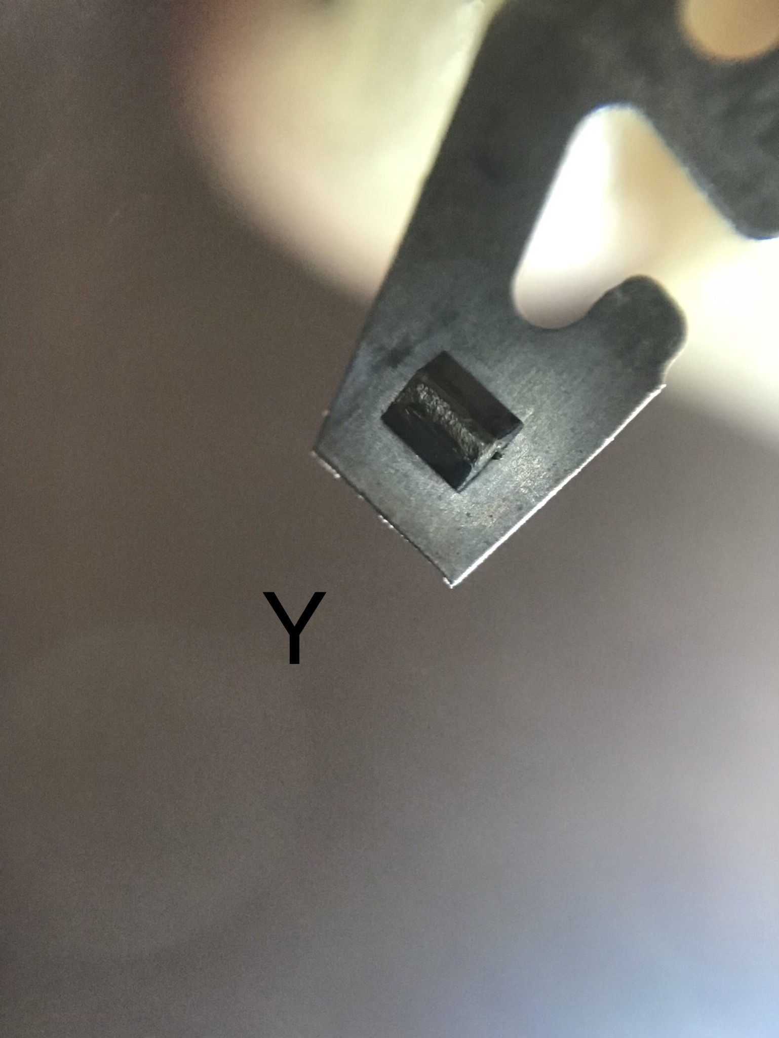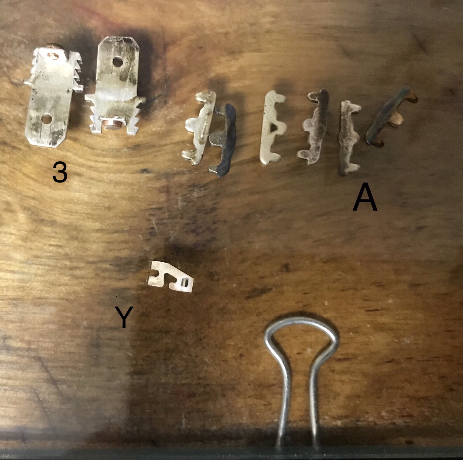 "Y" (because of its shape) has a small triangular contact on the bottom of the y that I took a close up image of. Again the silver/Tungsten contacts, any advice?