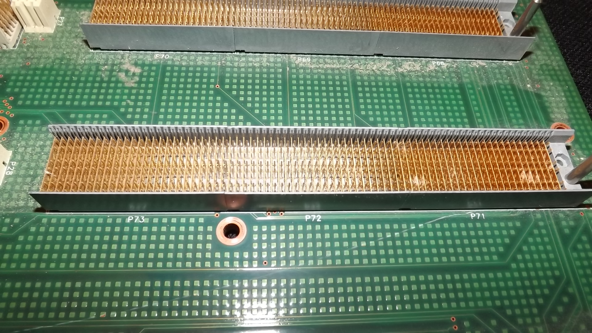 I do not believe it makes any difference whether it has card slots for expansion or as in your case, grids of pins for expansion. In fact, pins most likely have as much, if not more AU plating. Now a days the connectors in slots are likely to just have the high points flashed with AU.