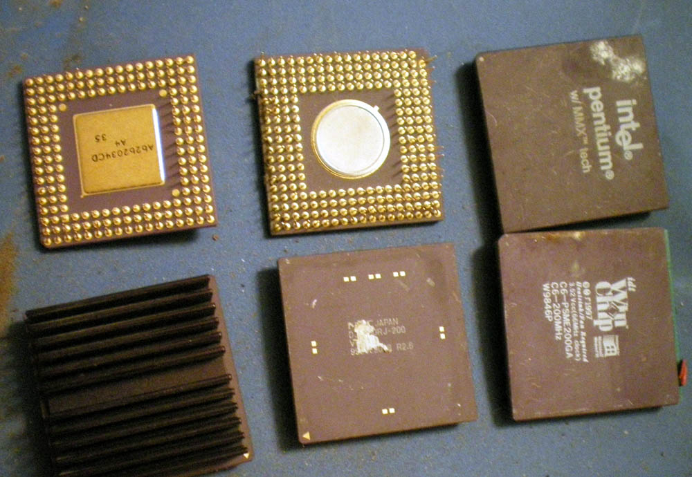 I'm wondering if they can go with pentium or 486 or better.. One is from printer boards and NEC. The other one is a single but looks like it has some nice gold in it, its the one with the extra chip on top. I put them beside a Pentium 1 for sizing.