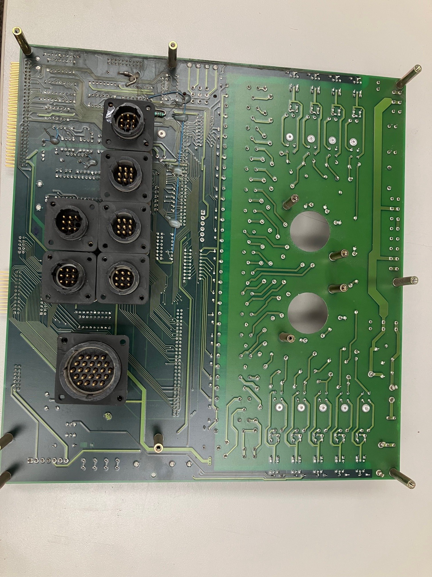 The quality visible gold pins does it for me.. If you ditch the metal bits(stand-offs) on the back side, it might be worth that. Its got a few good ICs, that block of relays seems to be most of the "garbage" but those have some value.. That's an interesting board for sure.