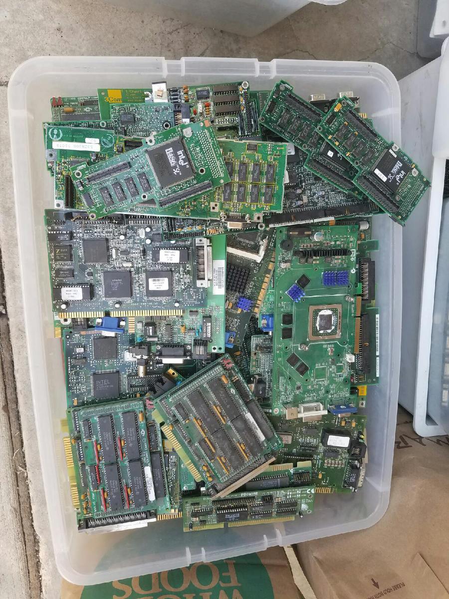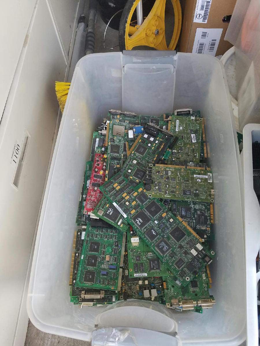 I would really appreciate it if someone could help me in identifying some of the boards I have and their grade. I can take more pictures but the lot I have is pretty large, most of the boards are in bins. I see that some of the "peripheral" cards have intel i960, i486 and others on them but it doesn't look like they can be removed, what can I do? Also do Floppy, CD/DVD rom, zip disc, and tape drive boards go into the same category as IDE,SCSI, and SATA hard drive boards? Also, sorry about all of the pictures. Thank you
