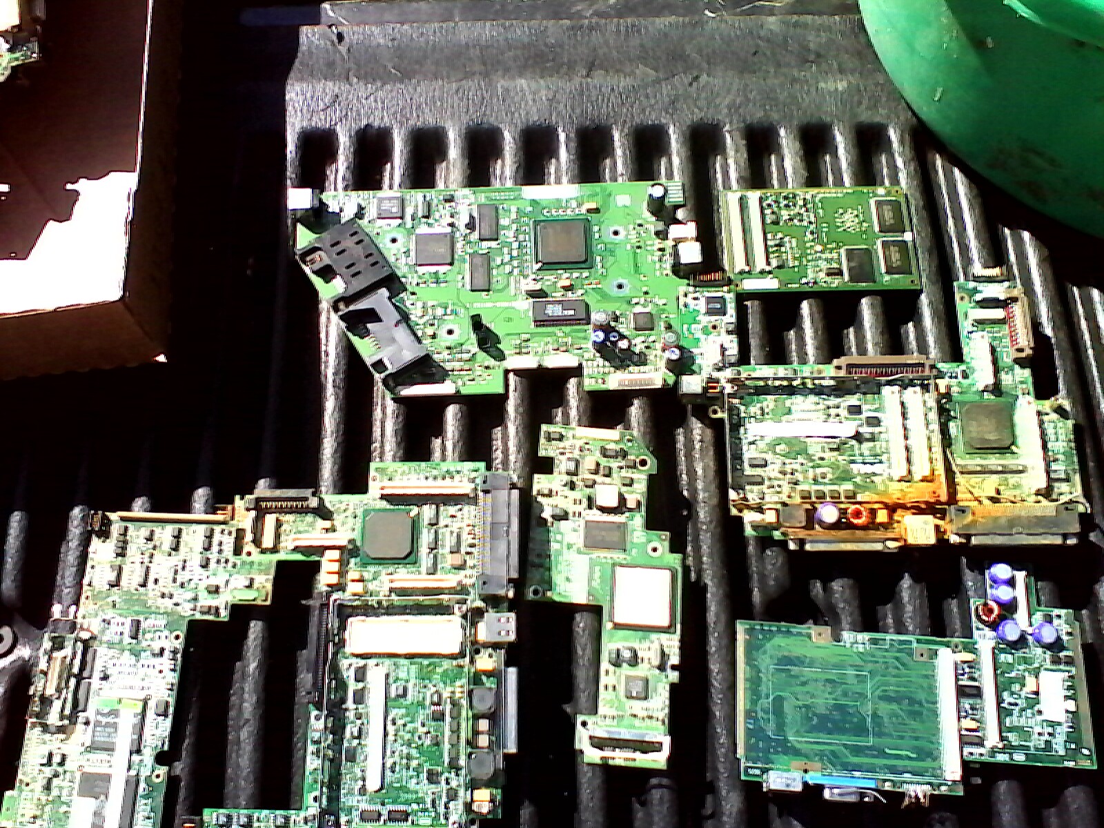 These appear to be laptop motherboards and one board appears to be a cpu card. the cpu card goes as green fiber with metal and any laptop boards you have go as either small socket or large socket motherboards. I believe the difference will be in if the cpu is soldered on or not.
