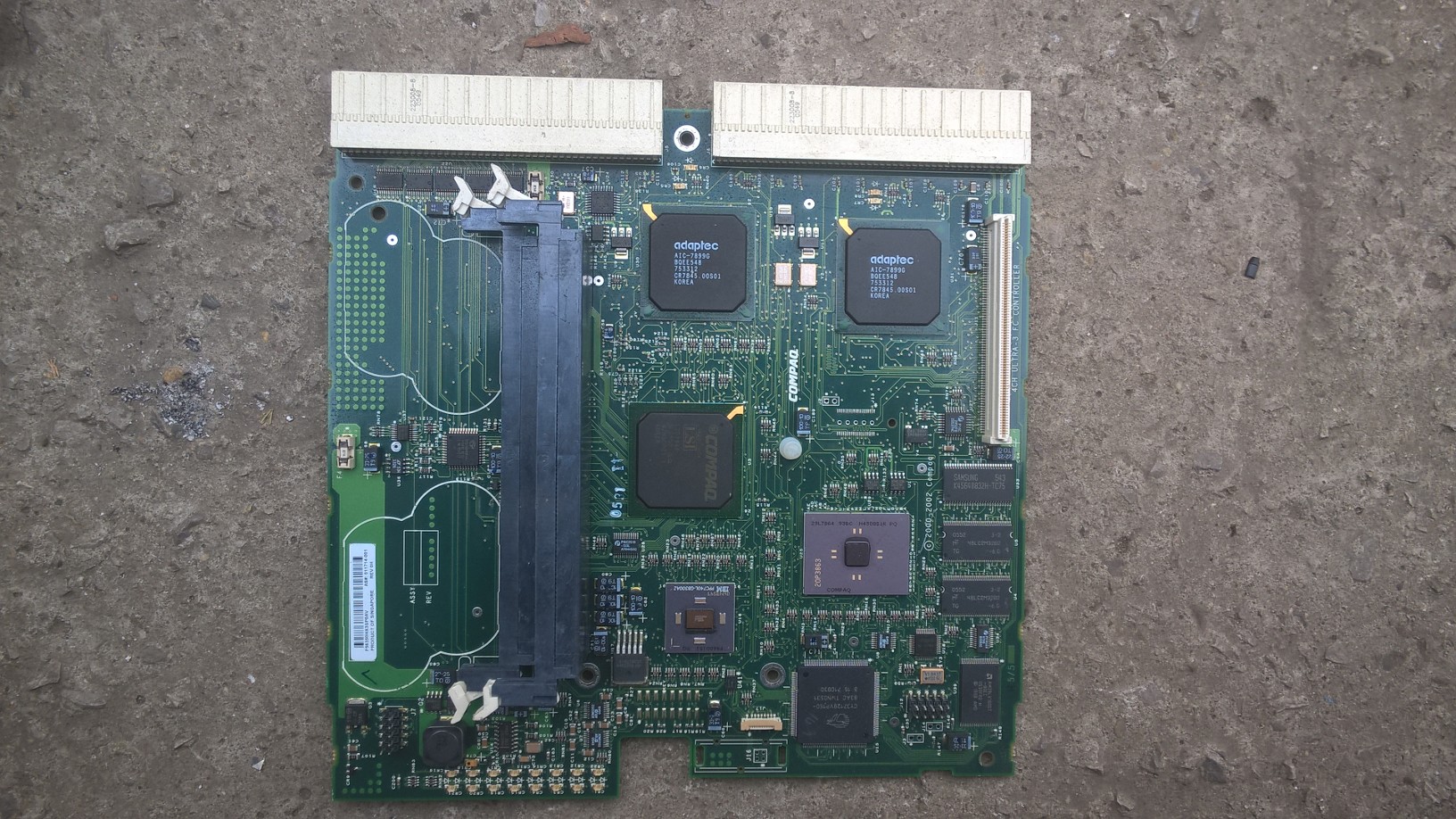 Green fibre with metal. (Same as mac G- cpu cards) it's a self contained cpu board with a nice AMD 20p on it.