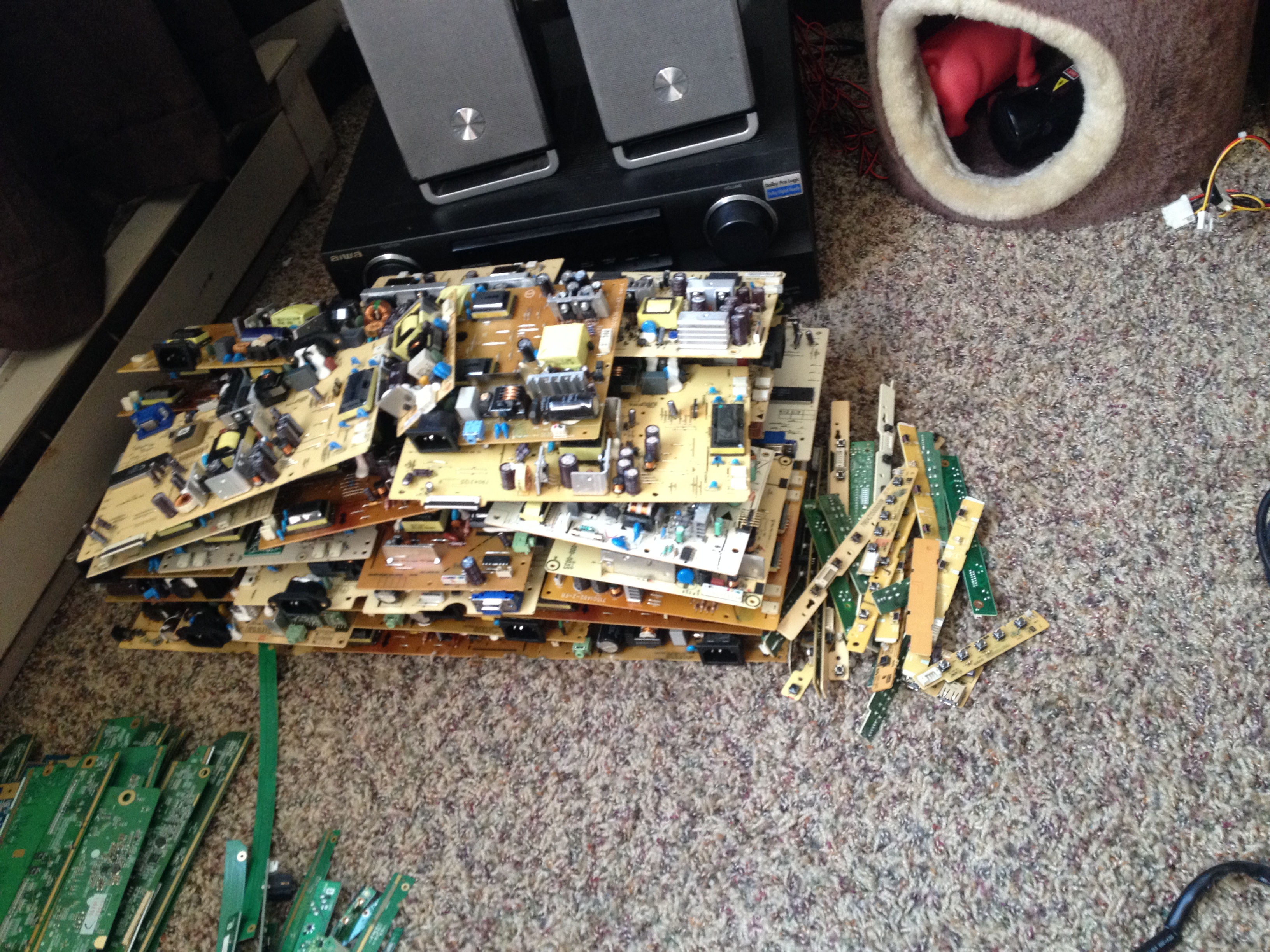 [edit] we posted at the same time! I pull the IC chips and transformers off the brown boards