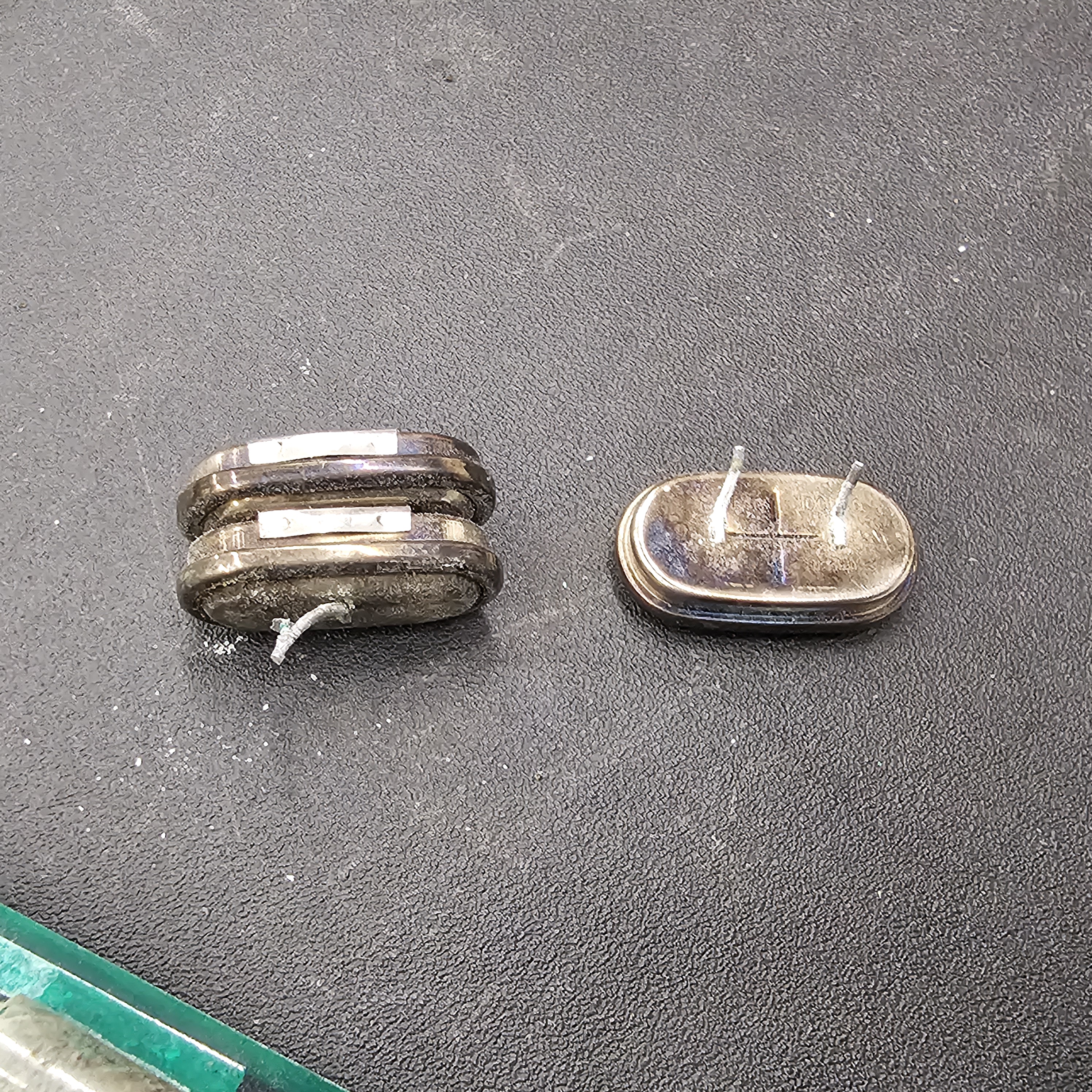 Reminds me of a typical nickel cadmium battery stack. Probably is. The corrosion on the left terminal is typical of that type of battery. Should be a B indication near it on the PCB itself. It is 3 nicads cells welded in series to get approximately 3.6 volts. Enough voltage to maintain memory circuits for the PCB when powered down or even removed from the device it is in. If it has some silver plate on it. I wouldn't be surprised. Dispose of properly. Or recycle.