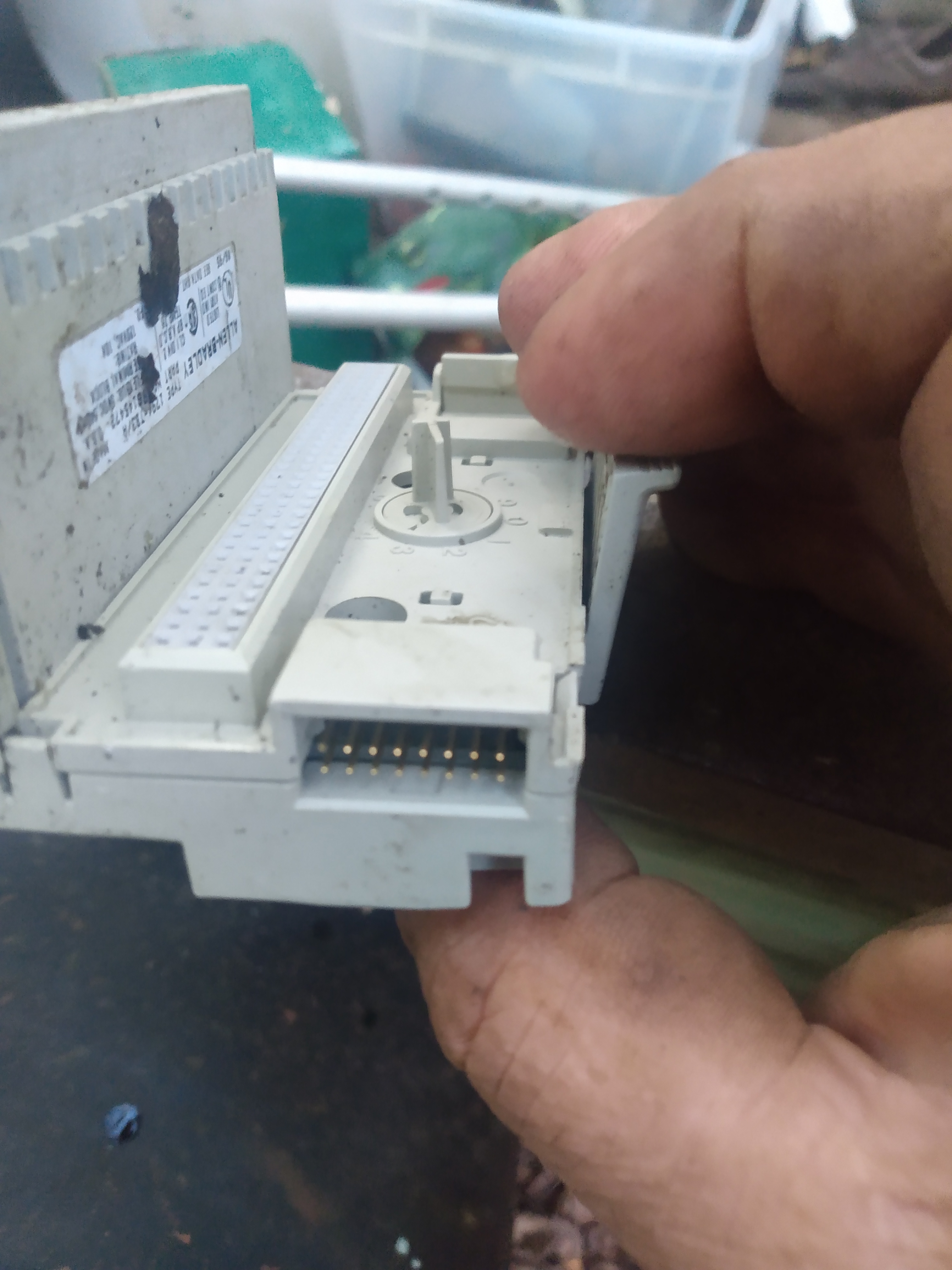 I bought a small pallet lot of AllenBradley power supply at auction a few months ago. Each unit weighs about ten-fifteen pounds whole. It was quick work to strip on the outer case, aluminum on some, and recover the boards which is heavy with transformer and torsion coils and heavy aluminum. Since these models were approximately 20 years old, no demand was evident on ebay, for this particular model #. After removing the board, I was left with a transmission block, as pictured. While it has some copper and brass connectors, it didn't seem worth stripping, and I was about to toss them in the shred tin pile, when I noticed the gold pin connector sticking out of the plastic base. Also, another female connector sat on top. So I opened one. Nice little board, too good for shred at less than a dime a pound, so I opened all of them. Photos show sequence. The bottom plastic cover popped off easily with a single blow from a hammer. Then, I used an old thin bladed butcher knife as a "chisel" to cut the boards solder connections from the transmission block. Unfortunately, not much weight, and not a great value, but it is another pound or two into the next load, and I know what is hidden in the transmission block.