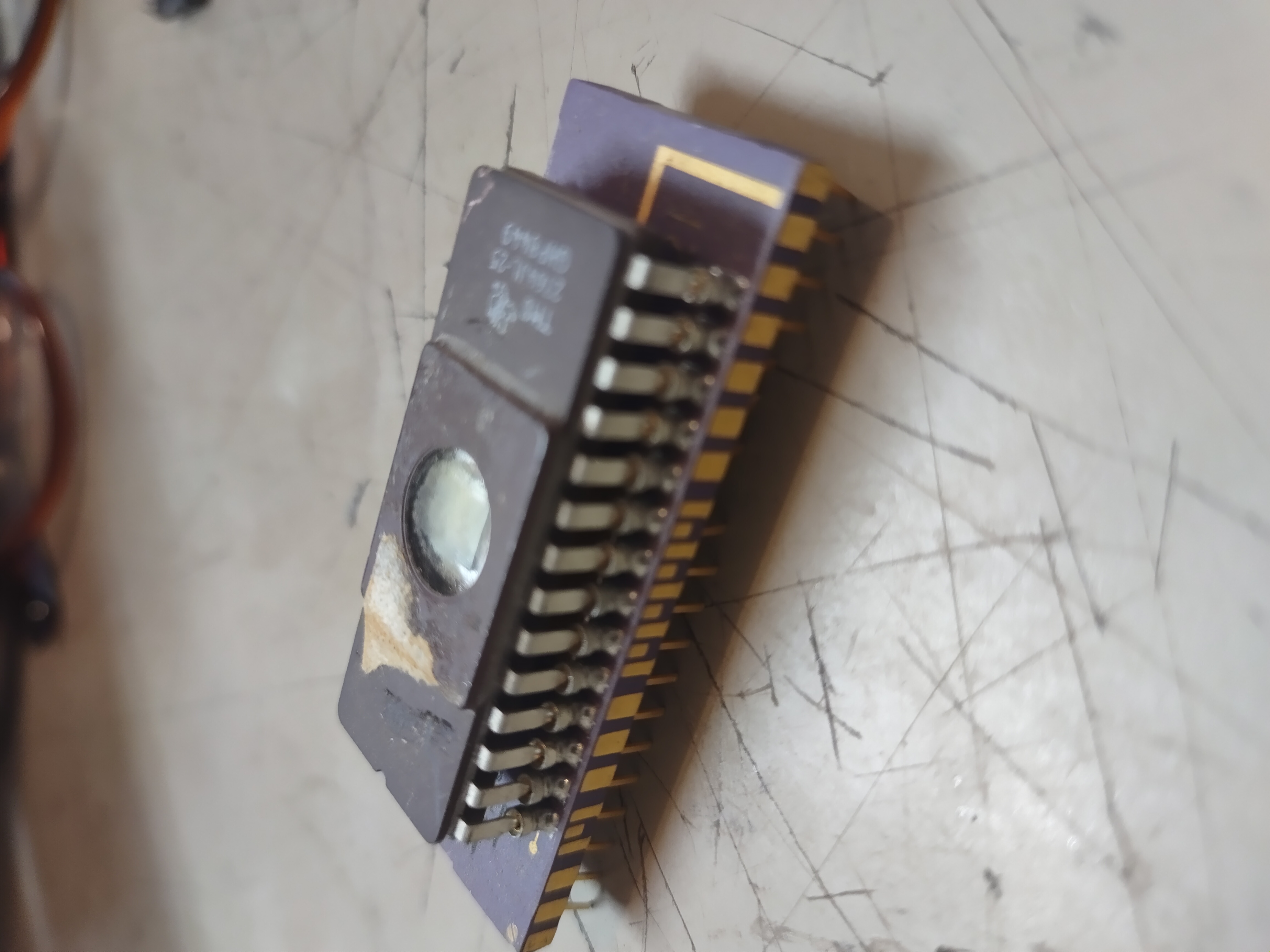 Going through a box of boards someone gave be I came across this. A gold cap gold leg IC chips at first i thought the smaller IC with the window in it was socketed in but it is actually soldered together. Do I need to clip the legs and remove the smaller chip? Or would it be ok to send as its? And for that matter are the windowed IC chips of a different value than the regular ones?