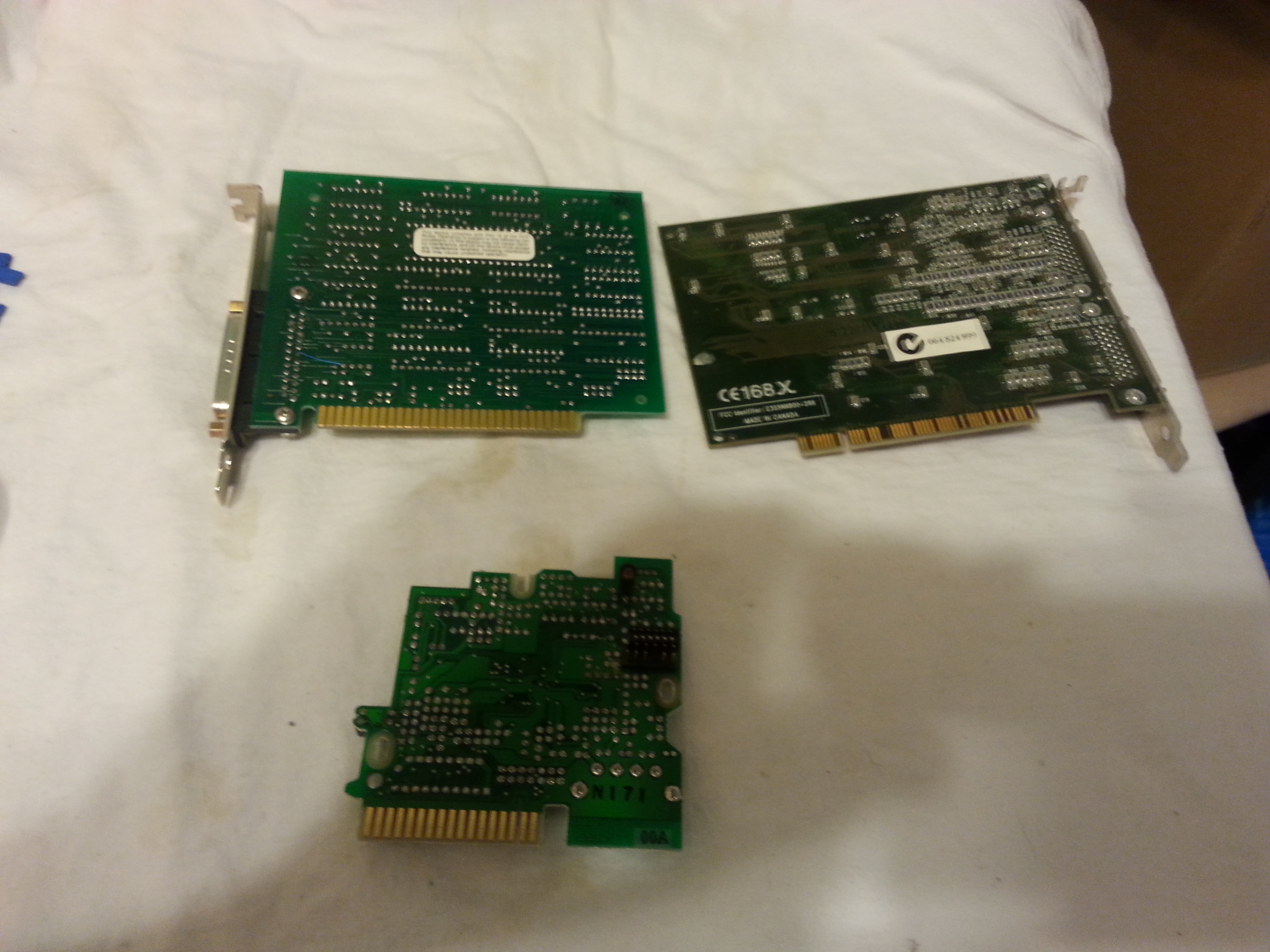 The two on top can pass for telecom given the IC population. The one on the bottom is more in line with a typical fingered card. Trimming the fingers will downgrade the card to peripheral and give you less than an ounce of fingers.