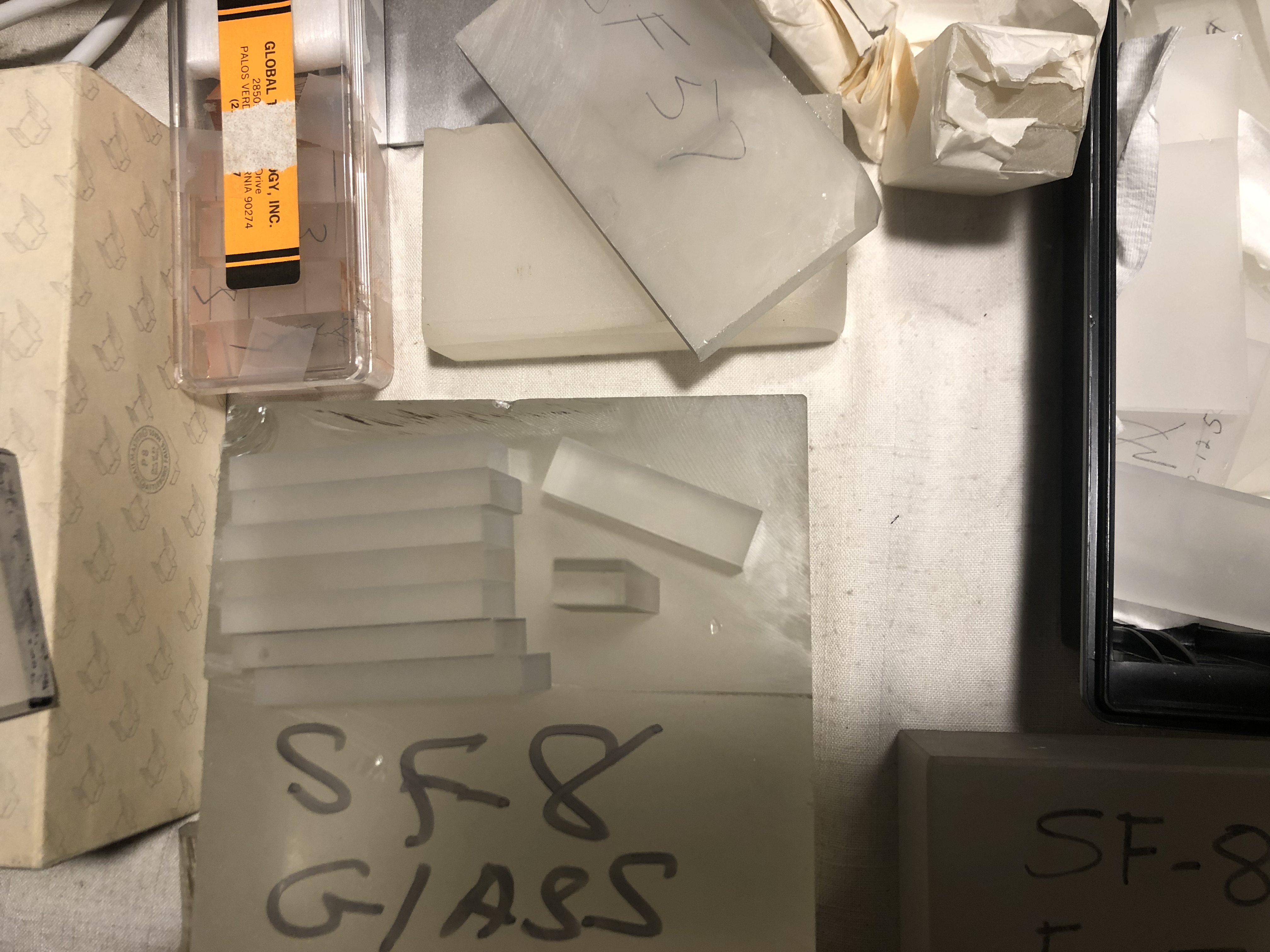 I won an auction from a closed materials testing facility - there was a skid of miscellaneous glass and porcelain samples - very heavy glass - they did work for Coors porcelain in Boulder - which did Shuttle work. This glass is very heavy and with different coatings - clear quartz - also had silver ribbon foil and a lot of aluminum squares of different thicknesses. Any ideas out there on where to put out feelers for this stuff? I have a lot of it on my e-bay account - but the high grade glass I'm not sure of - looks like it could be used in industrial lasers.