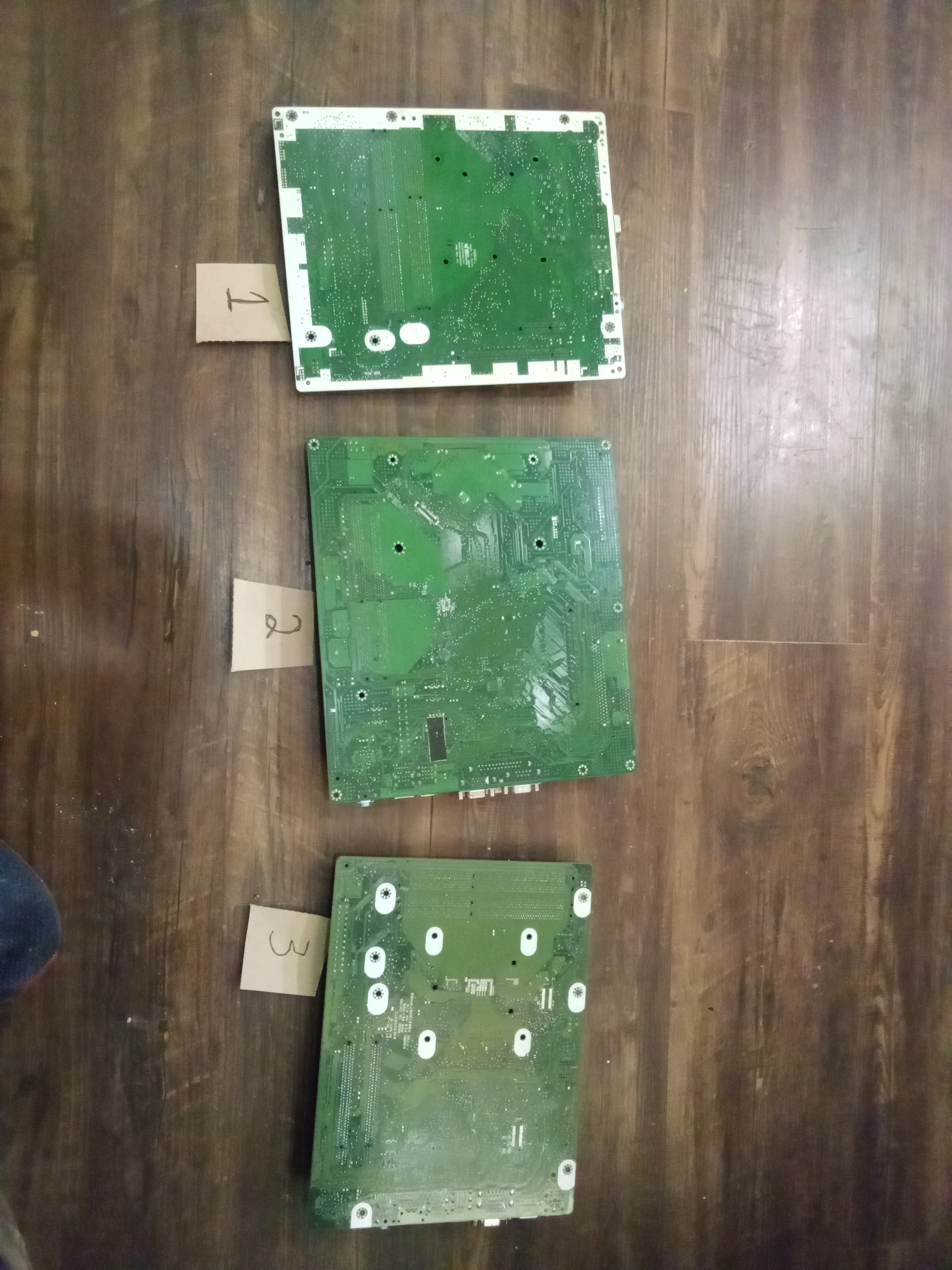 They all look like Metal Socket Green Motherboard. Be sure to remove the battery on #2. Here's a good explanation of sorting mother boards.