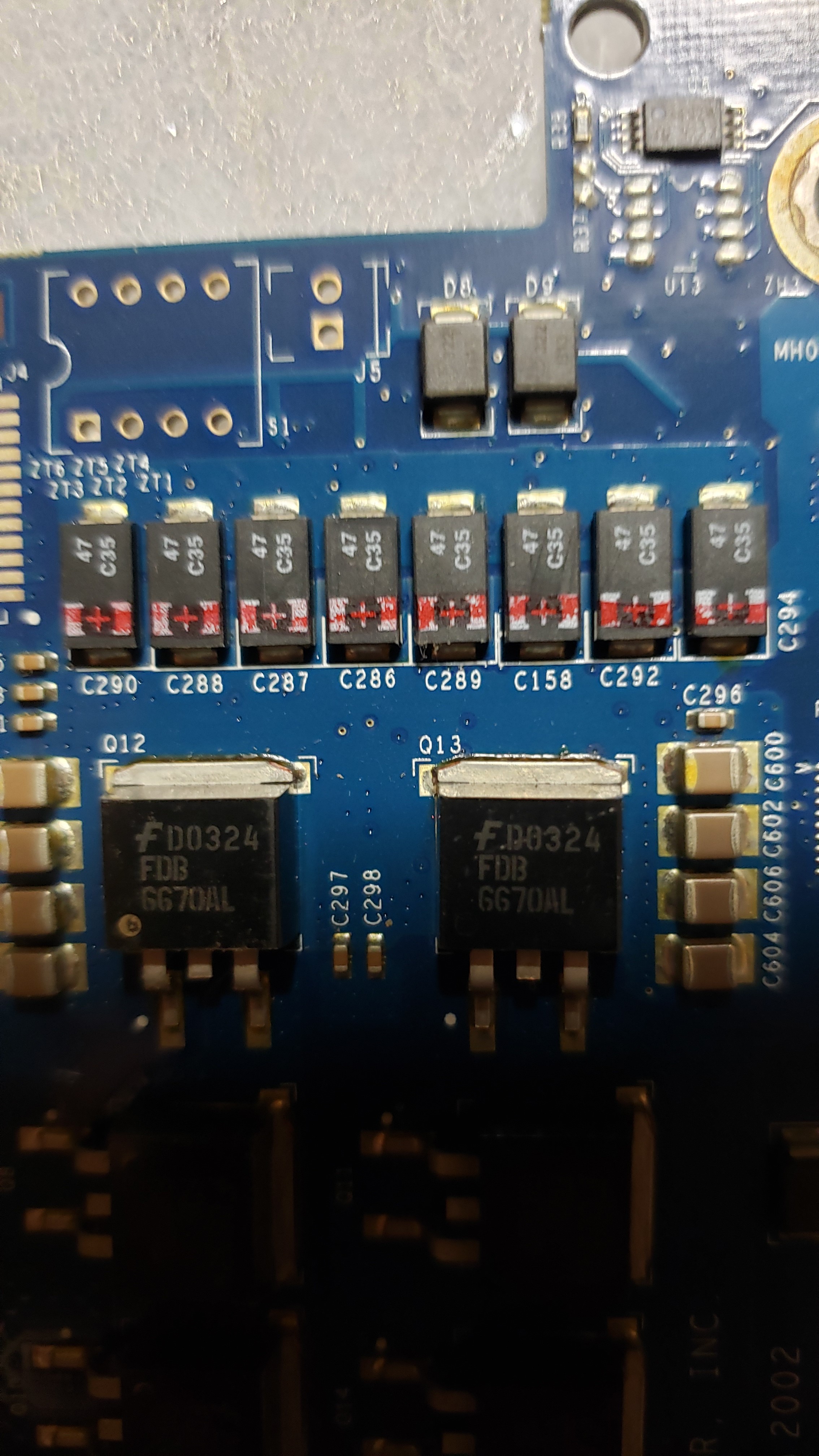 But the board on the right...exact same board from the same type of server, the row of Caps across the top are Black??? Are these still Tantalum Caps?